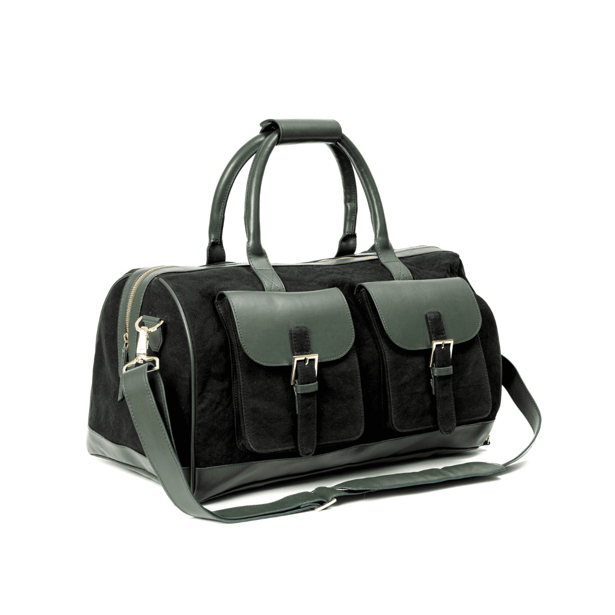 Ajax Vegan Leather Duffle Bag – Black & Green
