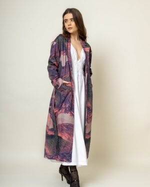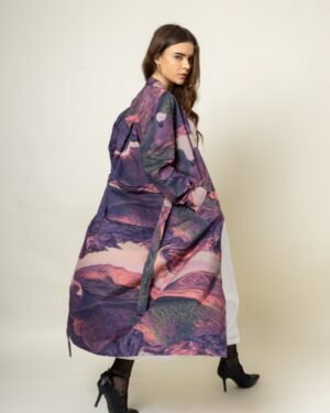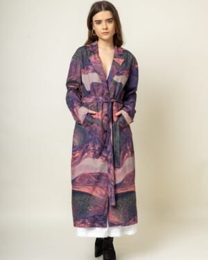 Printed Long TrenchFit: ComfortableFabric: Upcycled cotton (factory deadstock)Length: 48″Color: Purple
