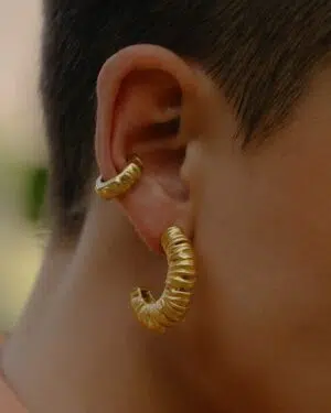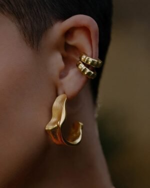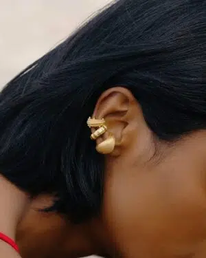 Celebrate timeless elegance with this Ancient Patina Ear Cuff, designed for women who appreciate heritage-inspired designer jewelry with a contemporary touch.Featuring an antique patina-inspired texture, this ear cuff reflects a rich, aged aesthetic while maintaining a refined modern silhouette. Crafted from premium brass alloy and finished with 22KT real gold plating, it offers durability, long-lasting shine, and a luxurious feel.The piercing-free slip-on design ensures easy wear and all-day comfort. This single-piece ear cuff is ideal for everyday wear, festive occasions, parties, and designer styling. Pair it with ethnic outfits or fusion looks for a bold yet elegant statement.Key Features:Piercing Free Ear Cuff – No piercing requiredAncient Patina Finish – Heritage-inspired designer lookSingle Piece Statement Design22KT Real Gold Plating on premium brass alloyLightweight, adjustable & comfortable fitPerfect for casual, festive & designer wearA perfect choice for women who love antique-inspired yet modern statement jewelry.