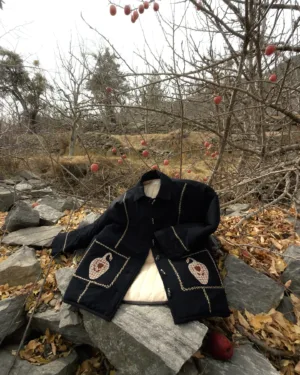 Aria appliqué hand-embroidered quilted linen long jacket. It features duck appliqué work on both pockets detailing along the front and cuff. It is fully lined with soft cotton fabric.