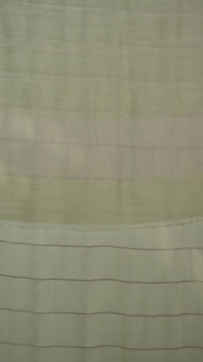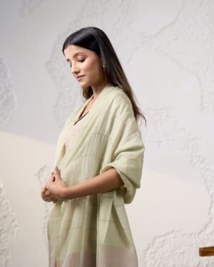 The Aria handwoven stole is made of fine cashmere with a green background and an array of zaree stripes in the front, gi