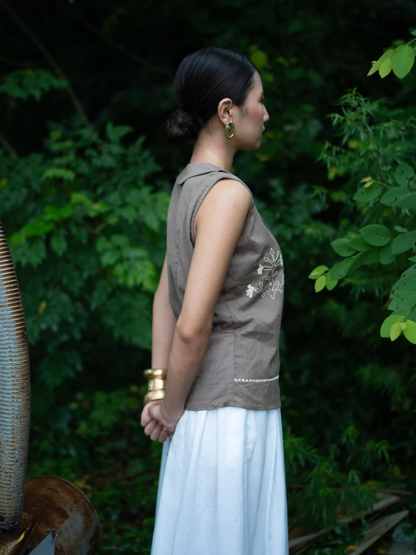 A hand embroidered wrap top