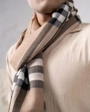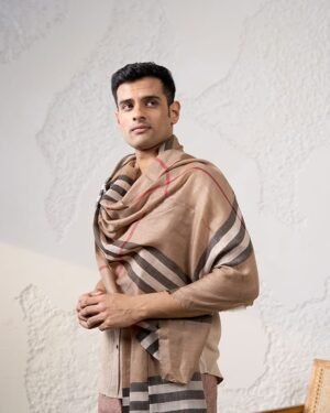 The Arrow handwoven cashmere stole is one-of-a-kind in its collection for it features a strip pattern handcrafted with e