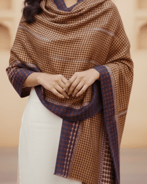 Embrace the warmth of earthy tones with our Amberwood Screen-Printed Cashmere Stole, crafted in 100% Fine Wool Cashmere
