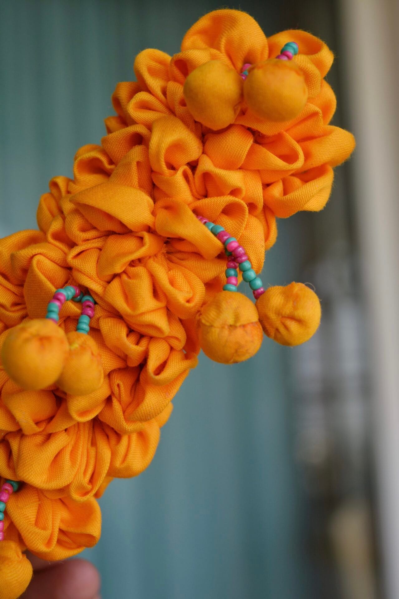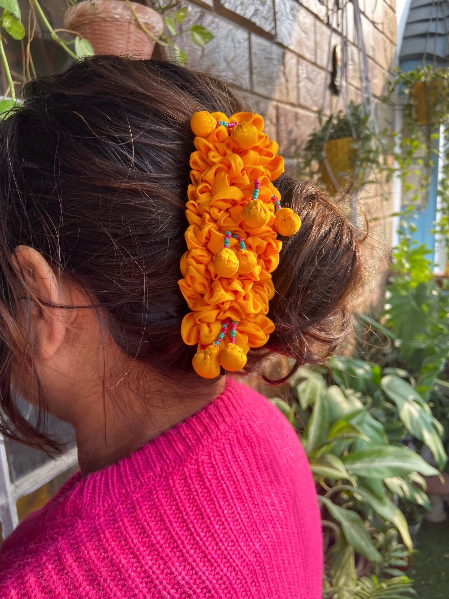 Looking to add a pop of color and a dash of charm to your hairstyle? Let us introduce you to Basanti, the ultimate handmade textile floral claw clip! This beauty is adorned with three dozen bright yellow flowers that are just bursting with life. Imagine a little bouquet right in your hair—it’s as cheerful as it sounds!