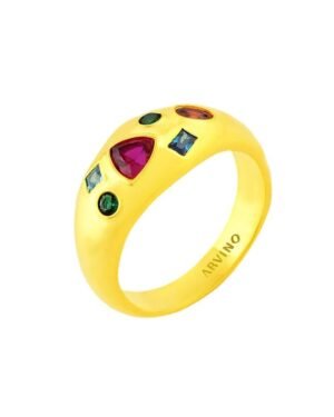 The Bezel Bounty Ring is a vibrant celebration of color and creativity, featuring an array of multi-colored stones in va