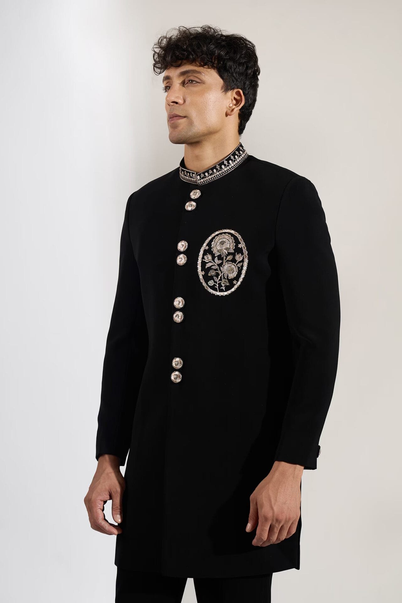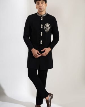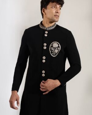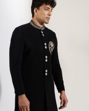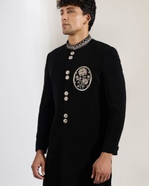 Black Embroidered Achkan