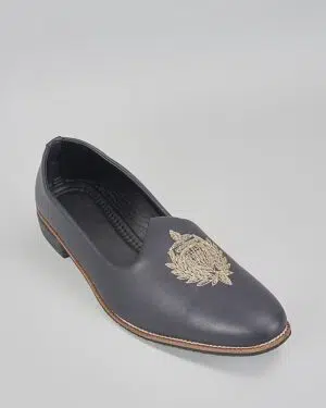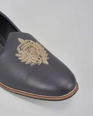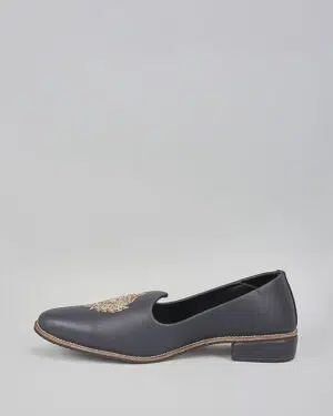 Black Self Design Embroidered Loafe