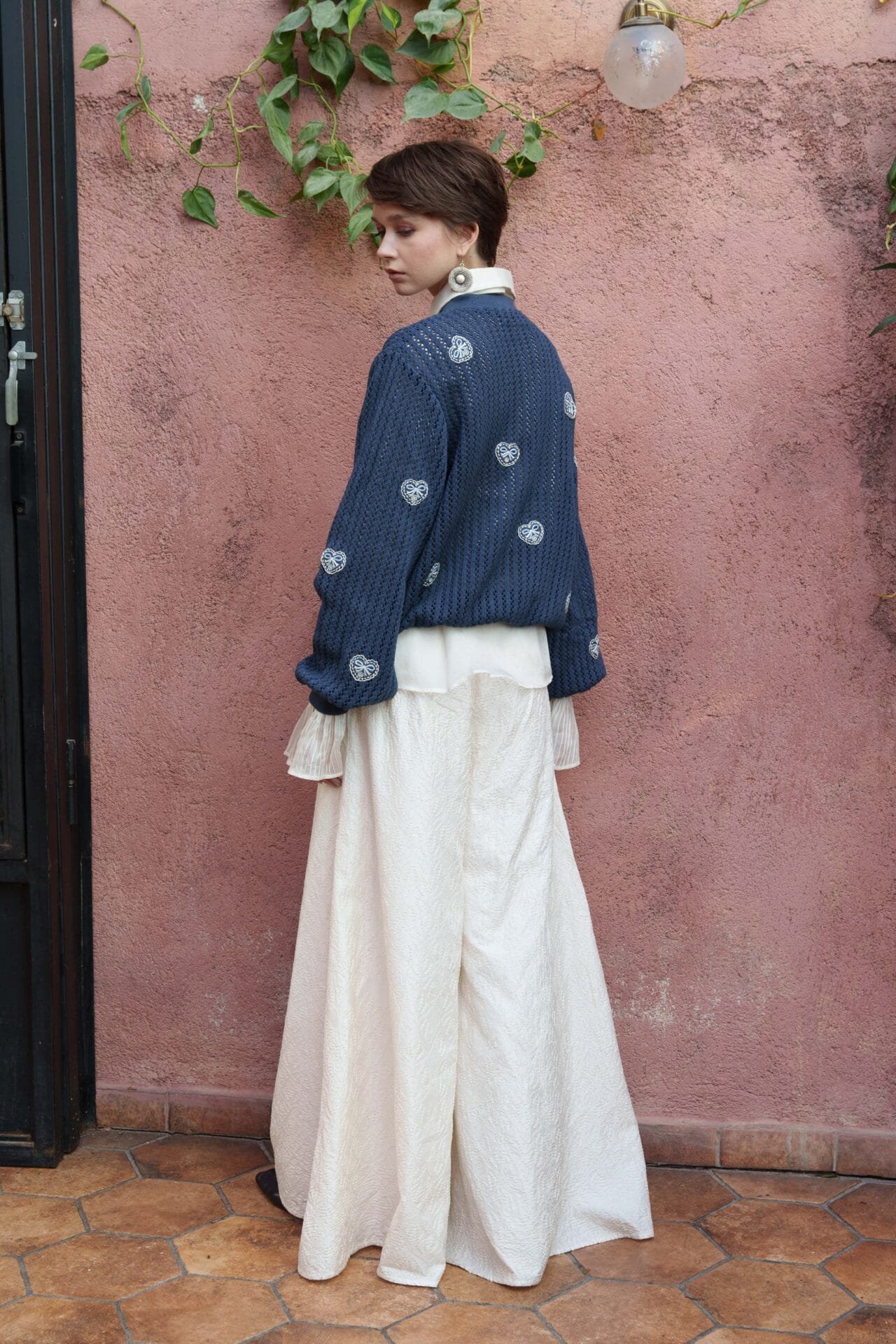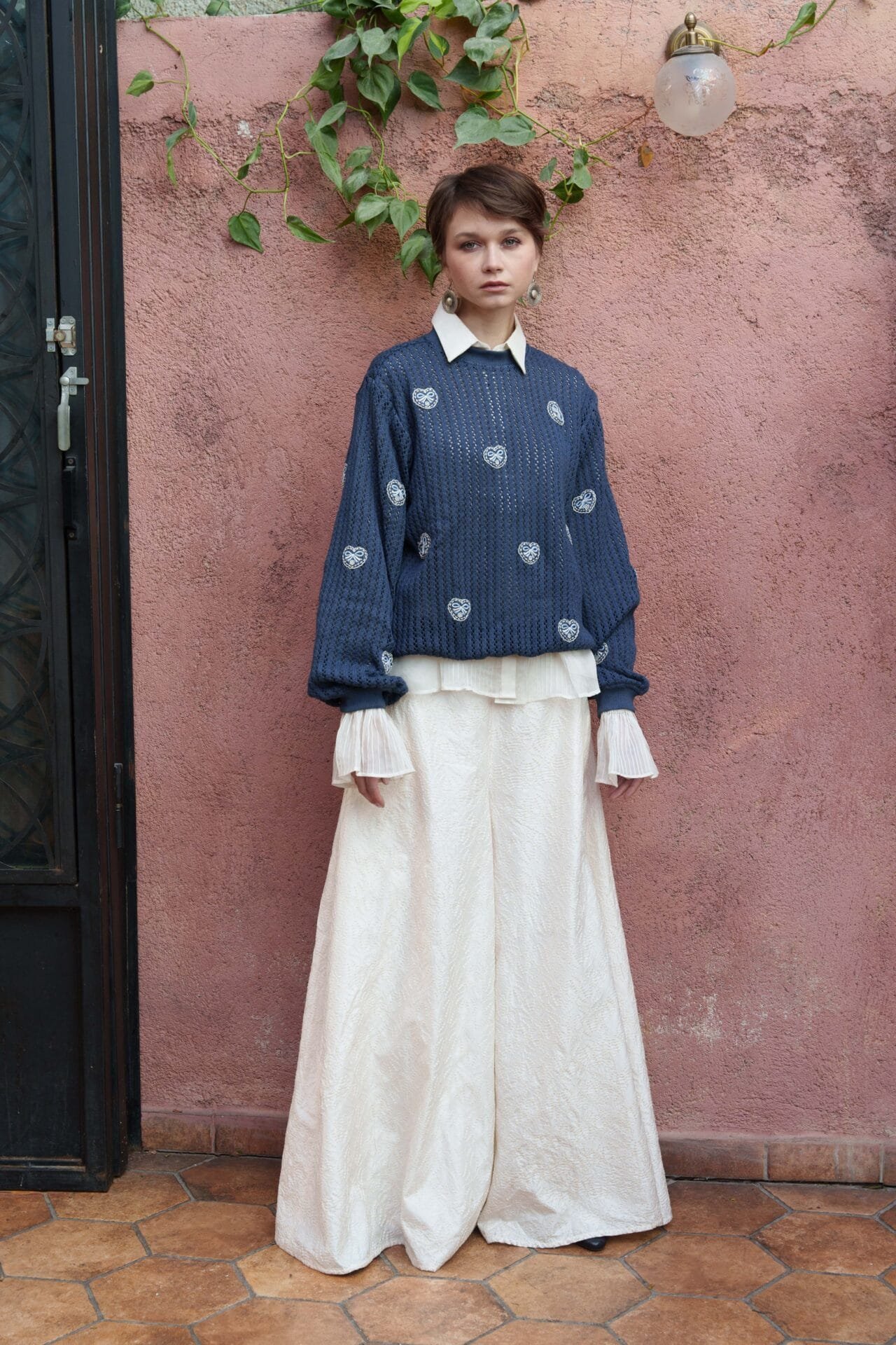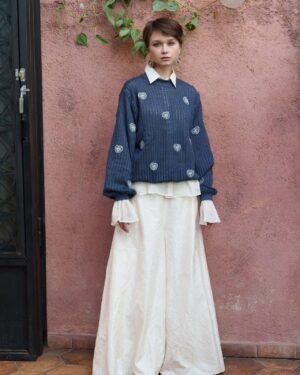 Blue heart embroidery sweater