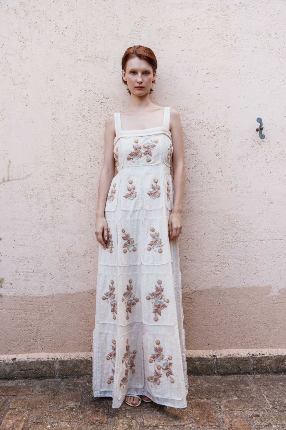 Bone chanderi with lace applique floral embroidered maxiBone chanderi with lace applique floral embroidered maxi