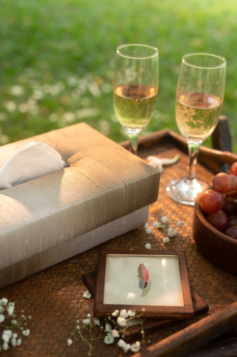 Imbibe the essence of love towards Mother Nature with Cael handmade tissue box, this festive season. As an ode to great warrior angel, Cael exudes a warm, earthy aura as represented by its hue. Handwoven with pureSilk, find bespoke hand-tye-dye in glod gradation embedded on the tissue box.