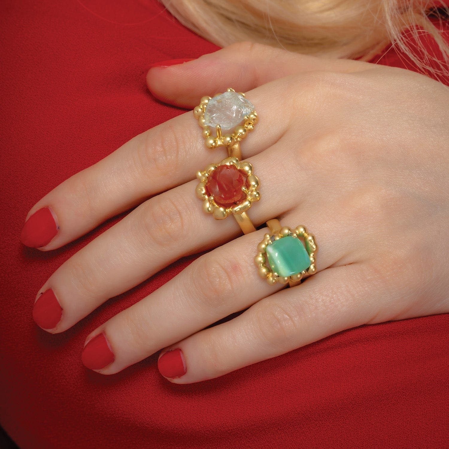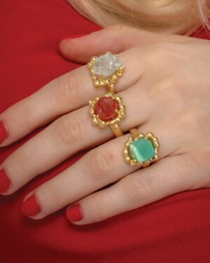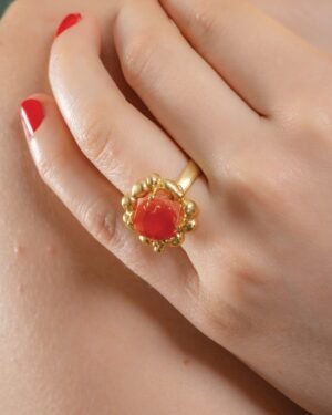 Awaken Your Inner Fire with Natural CarnelianOur Carnelian Mineral Claw Ring is a celebration of raw beauty and bold design. Known as the "Artist?s Stone," the vibrant orange-red hues of the natural Carnelian mineral are beautifully contrasted by a sculptural gold claw setting, making each piece a unique work of art.Artisanal DetailsAuthentic Gemstone: Features a hand-selected natural Carnelian stone, prized for its unique banding and deep sunset tones.Premium Plating: Thick 22KT Real Gold Plating over a sturdy brass alloy base for a luxurious, long-lasting shine.The Claw Design: A unique, edgy setting that securely "grasps" the mineral, showcasing its organic shape while adding a modern gothic-chic vibe.The Power of CarnelianBeyond its aesthetic appeal, Carnelian is celebrated in the wellness community for promoting courage, motivation, and endurance. Whether you wear it for its striking color or its grounding energy, this ring serves as a daily talisman of strength.Why Choose Toilee Eco Designers?We