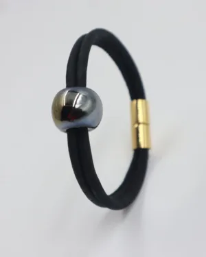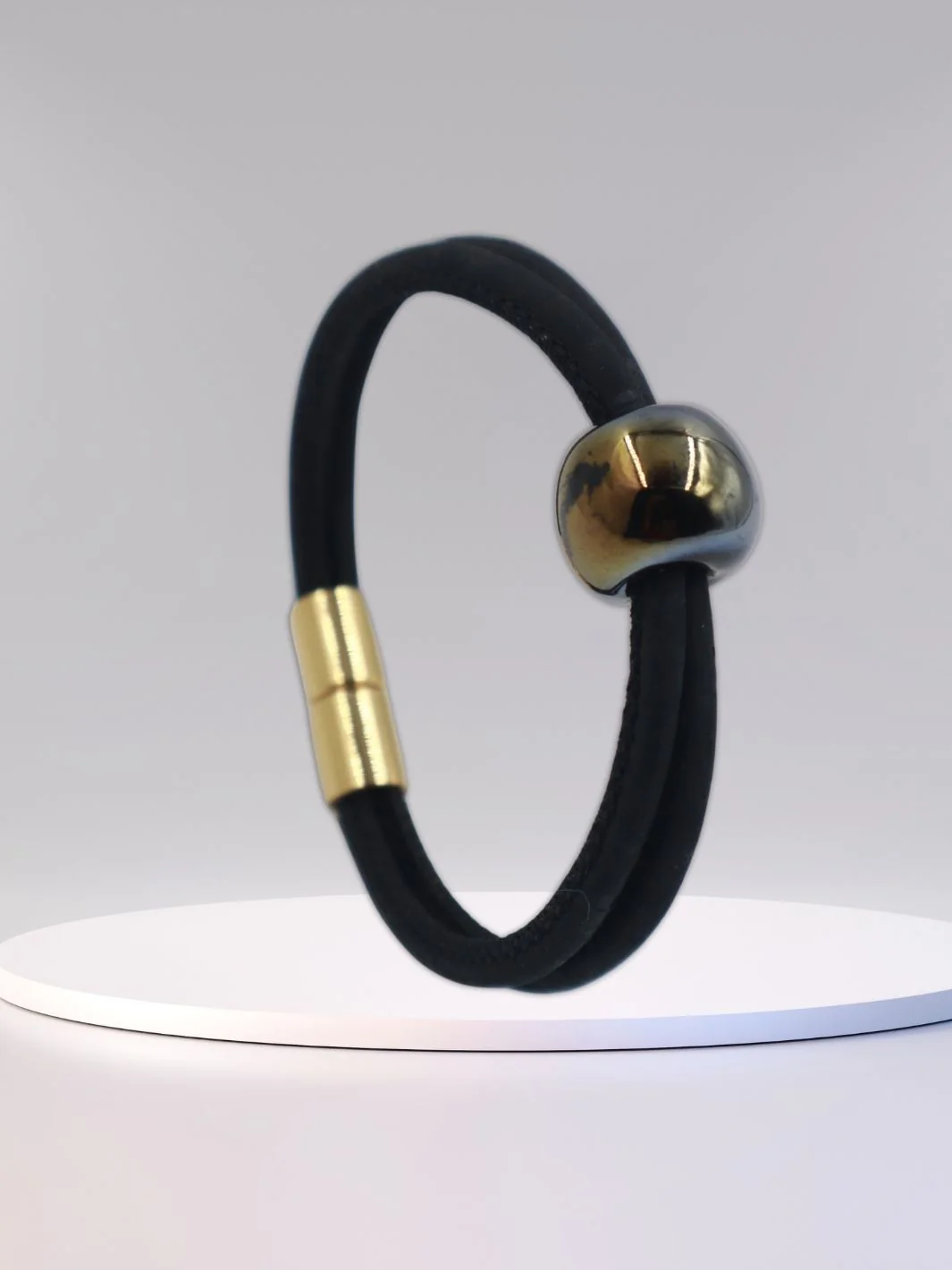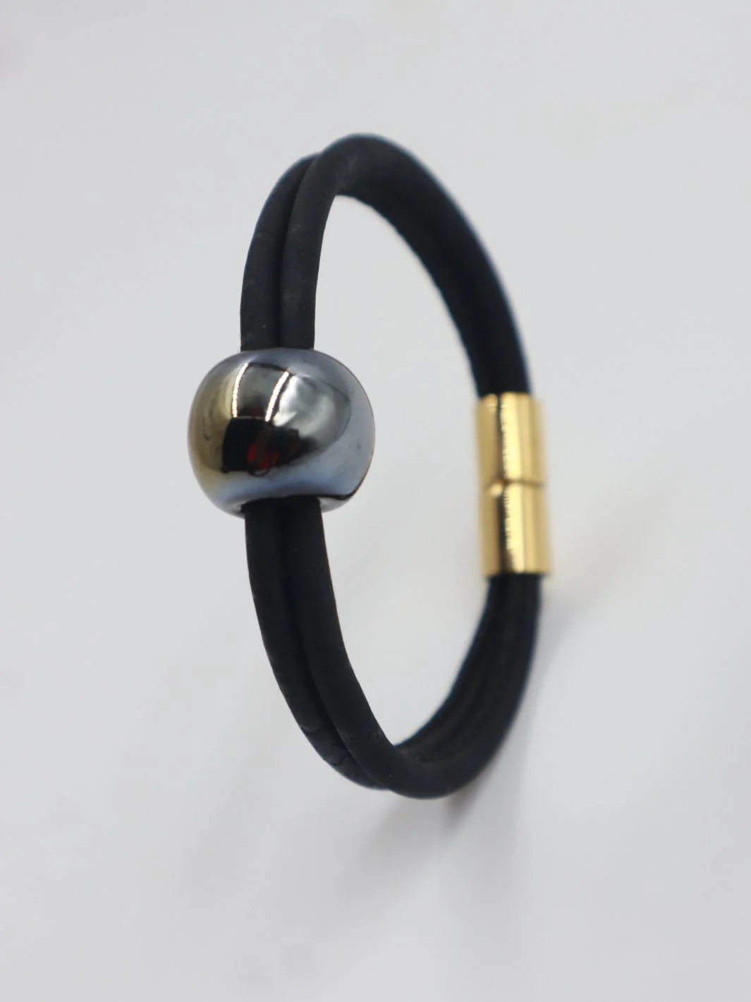 Presenting the Ceramic Onyx Elegance in Cork Bracelet, a stunning blend of style and sustainability.