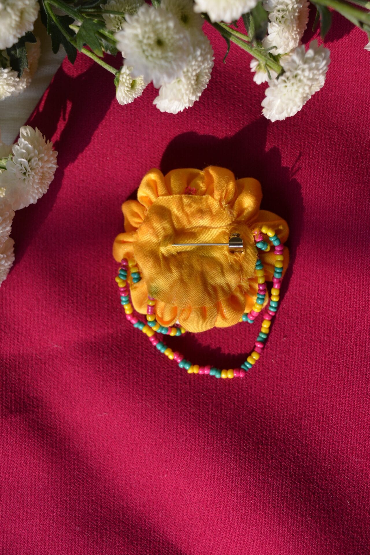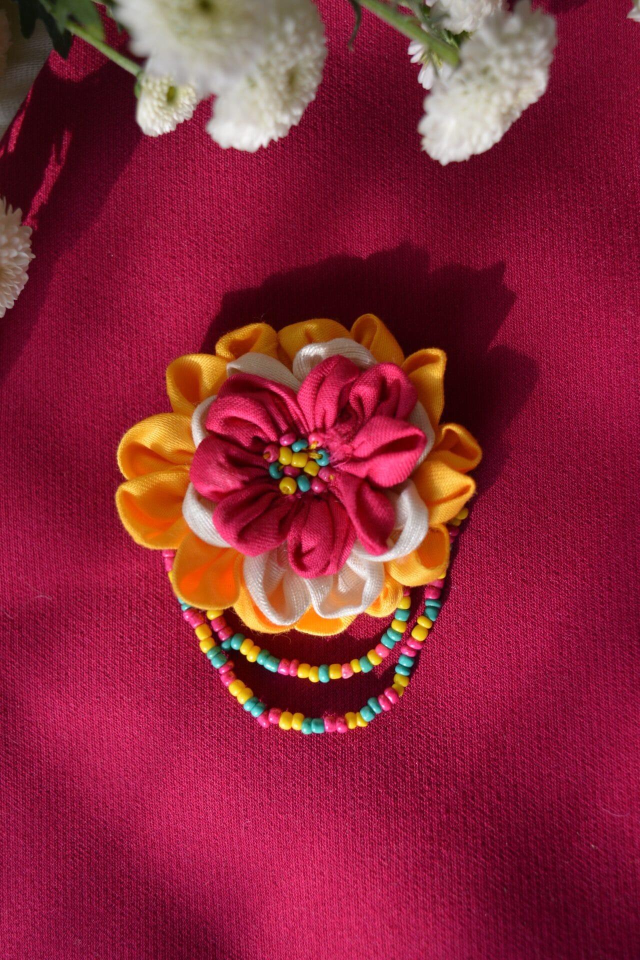 Introducing the Chameli Brooch—a testament to the art of handcrafting and minimalistic elegance. This exquisite accessory features three meticulously curated layers of fabric flowers, each harmoniously arranged to create a stunning visual impact. The Chameli Brooch transcends the boundaries of conventional styling, embodying a sophisticated charm that enhances the aesthetic appeal of any ensemble.