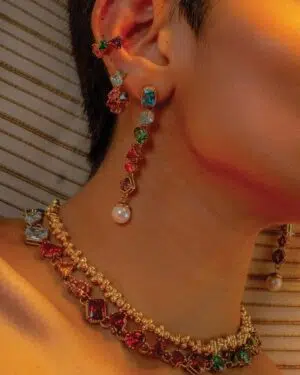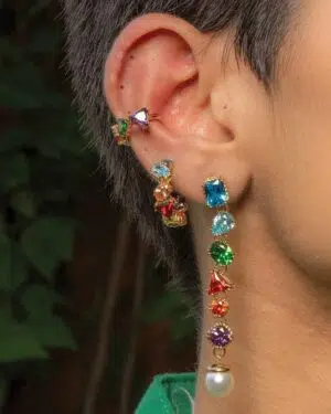 The Chromatic Cascade Ear Cuff is a testament to modern elegance and timeless allure. Fashioned from polished metal and