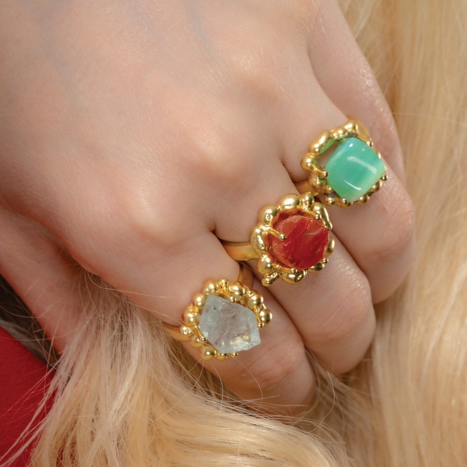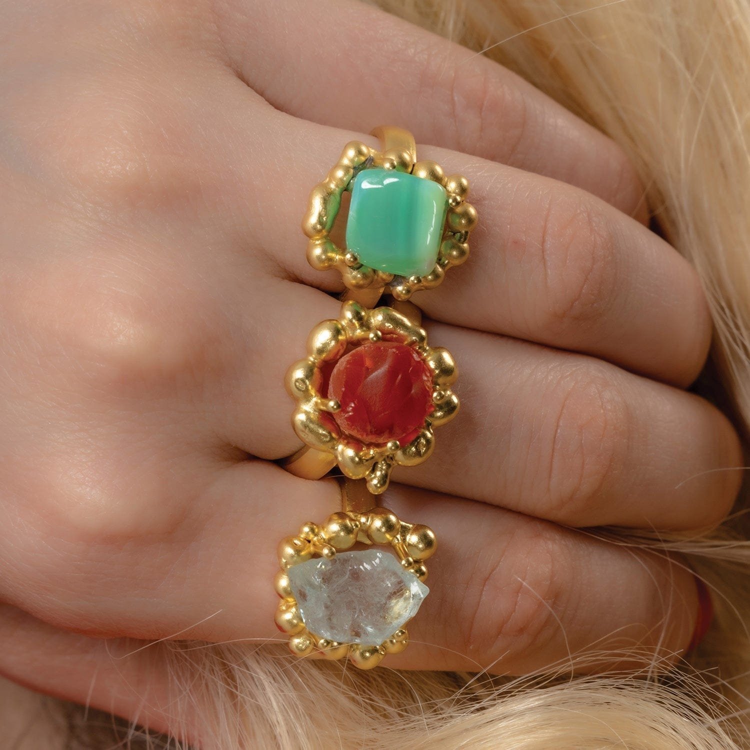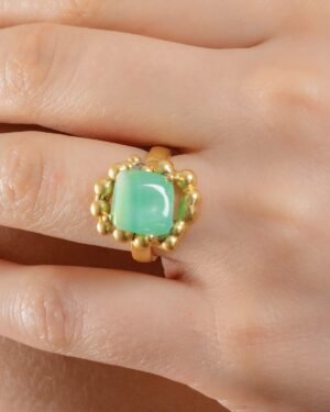 Chrysoprase Ring - Enchanter RingElevate your style with the Chrysoprase Enchanter Ring, a piece that exudes luxury and charm. Crafted with premium brass alloy and plated with 22KT real gold, this ring features a stunning Chrysoprase gemstone that brings elegance and tranquility to your look. Whether you're dressing up for a formal event or adding a touch of sophistication to your daily wear, this ring makes a perfect choice.The Chrysoprase Enchanter Ring is designed to suit modern and classic styles alike, with a captivating green hue that symbolizes harmony and renewal. The durable gold-plating ensures that this ring maintains its beauty and shine over time, making it a lasting addition to your jewelry collection.Key Features:Premium Quality Material: Made with high-grade brass alloy and plated with 22KT real gold for a luxurious finish.Beautiful Chrysoprase Gemstone: Known for its calming green hue, Chrysoprase is a gemstone believed to promote positivity and good