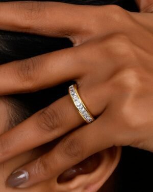 Classic Facet Ring - Diamond Eternity Band with 22KT Real Gold PlatingThe Classic Facet Ring is a symbol of timeless elegance and sophistication. Featuring a dazzling diamond eternity band, this exquisite ring is crafted with premium brass alloy and plated with luxurious 22KT real gold for a finish that sparkles with every movement. Its radiant design makes it perfect for daily wear or as a special gift for a loved one.This stunning eternity band is adorned with perfectly cut diamonds, creating a continuous circle of brilliance that represents everlasting love and commitment. Whether worn as a wedding band, an anniversary gift, or as an elegant addition to your jewelry collection, the Classic Facet Ring is sure to captivate hearts and turn heads.Key Features:Premium Material: Made from durable brass alloy and plated with 22KT real gold for a radiant and long-lasting finish.Diamond Eternity Design: Features a continuous band of sparkling diamonds,