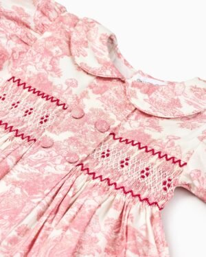 The Country Toile Dress in Red is crafted from breathable cotton poplin for a light and comfortable feel. Designed with half sleeves and a button-up closure, it features a printed pattern enhanced with delicate hand-smocked detailing. A functional front pocket adds everyday practicality, making this dress a perfect choice for casual wear. Hand wash is recommended to preserve its finish.