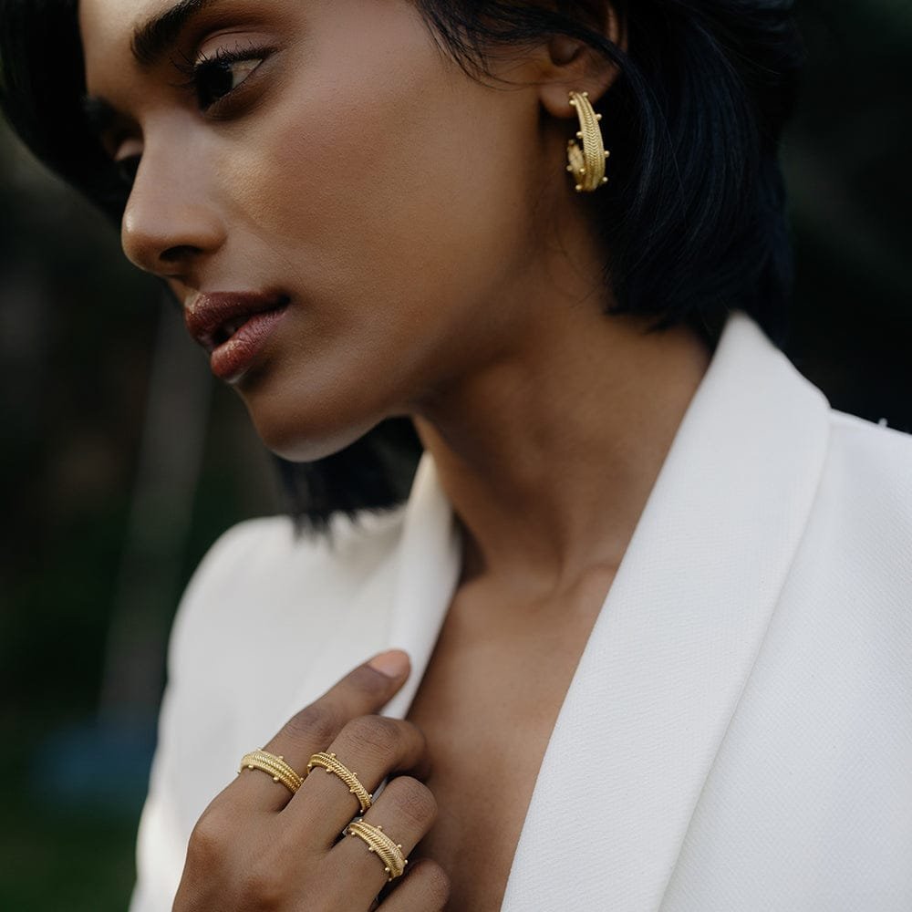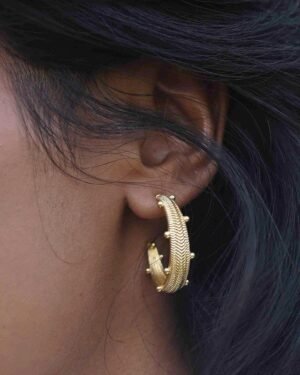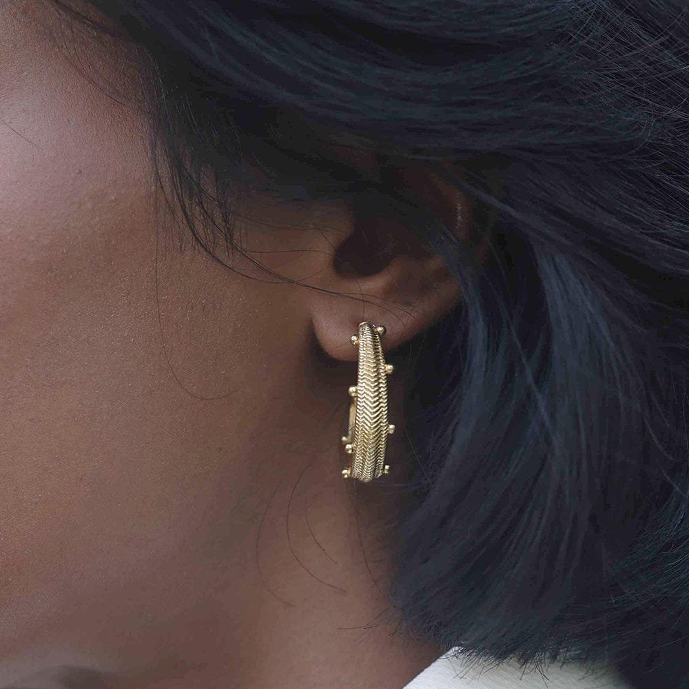 Our Chevron Pattern Hoops with Dew Drops feature an intricate design, beautifully crafted to evoke the artistry of bygon