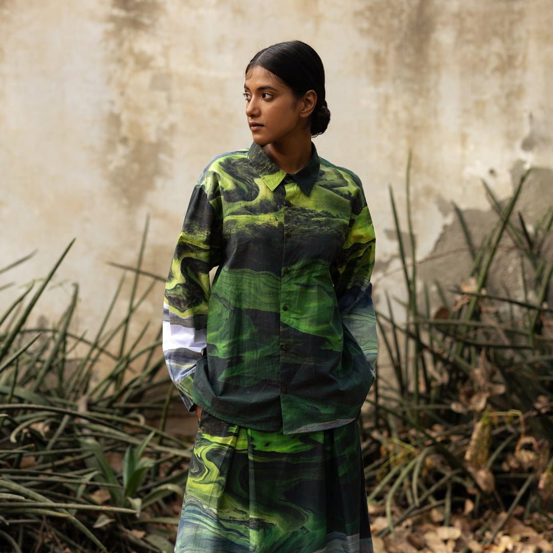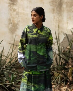 Full Sleeves printed shirtFit: OversizedFabric: Upcycled cotton (factory deadstock)Length: 27″Sleeve Length: 22″Color: