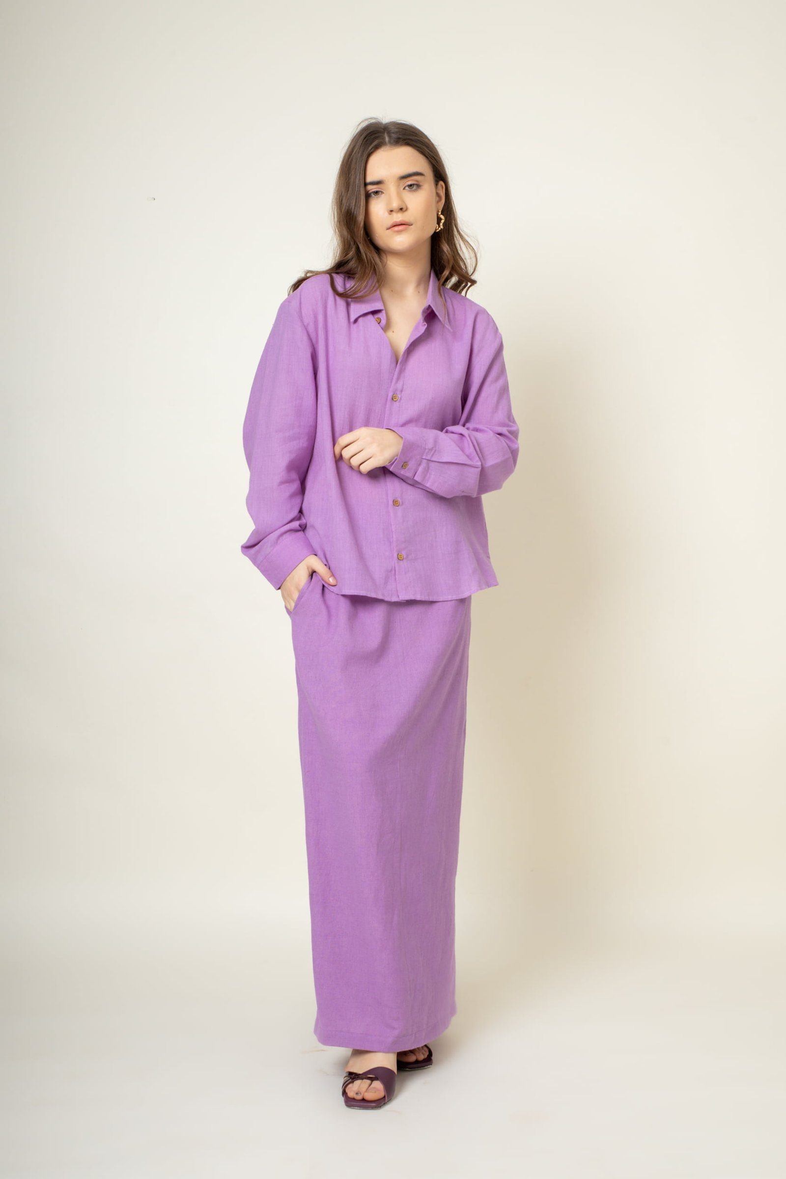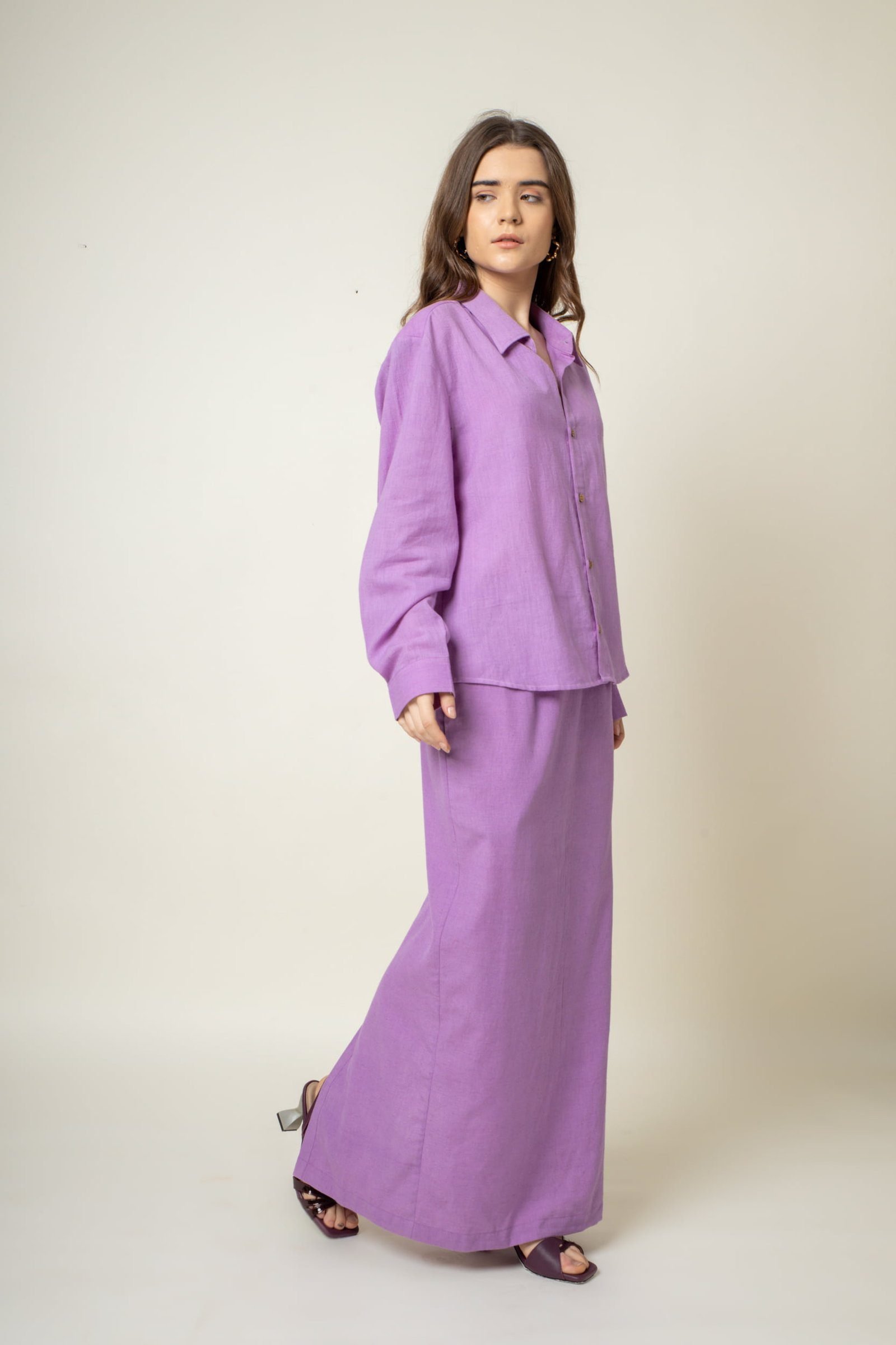 Full Sleeves shirtFit: RegularFabric: Organic CottonLength: 26″Color: Purple