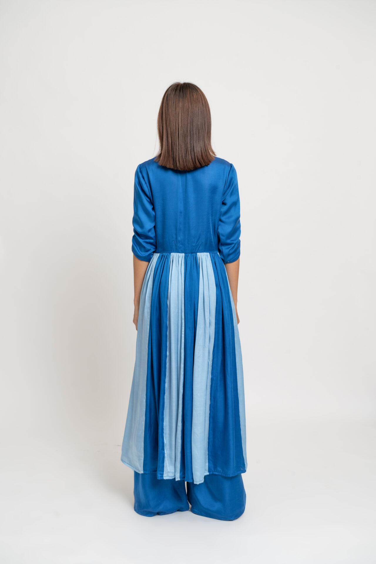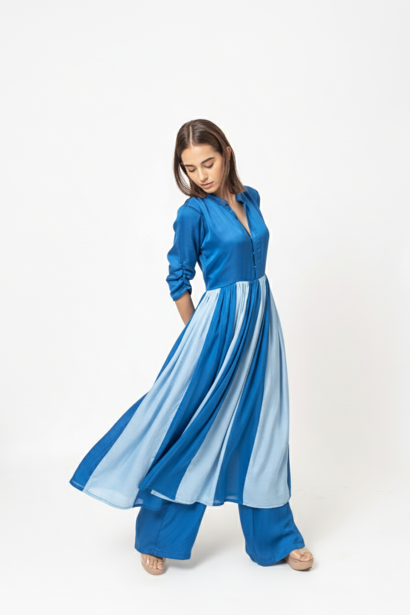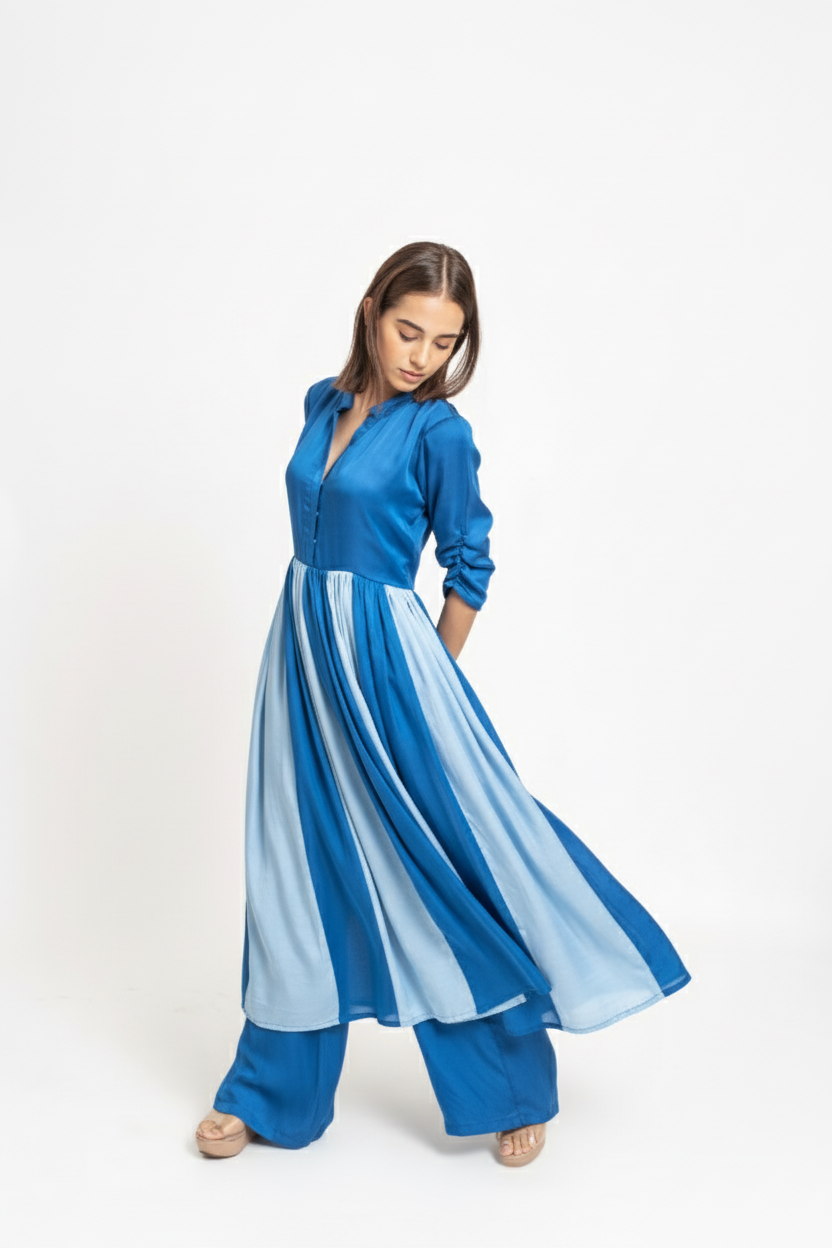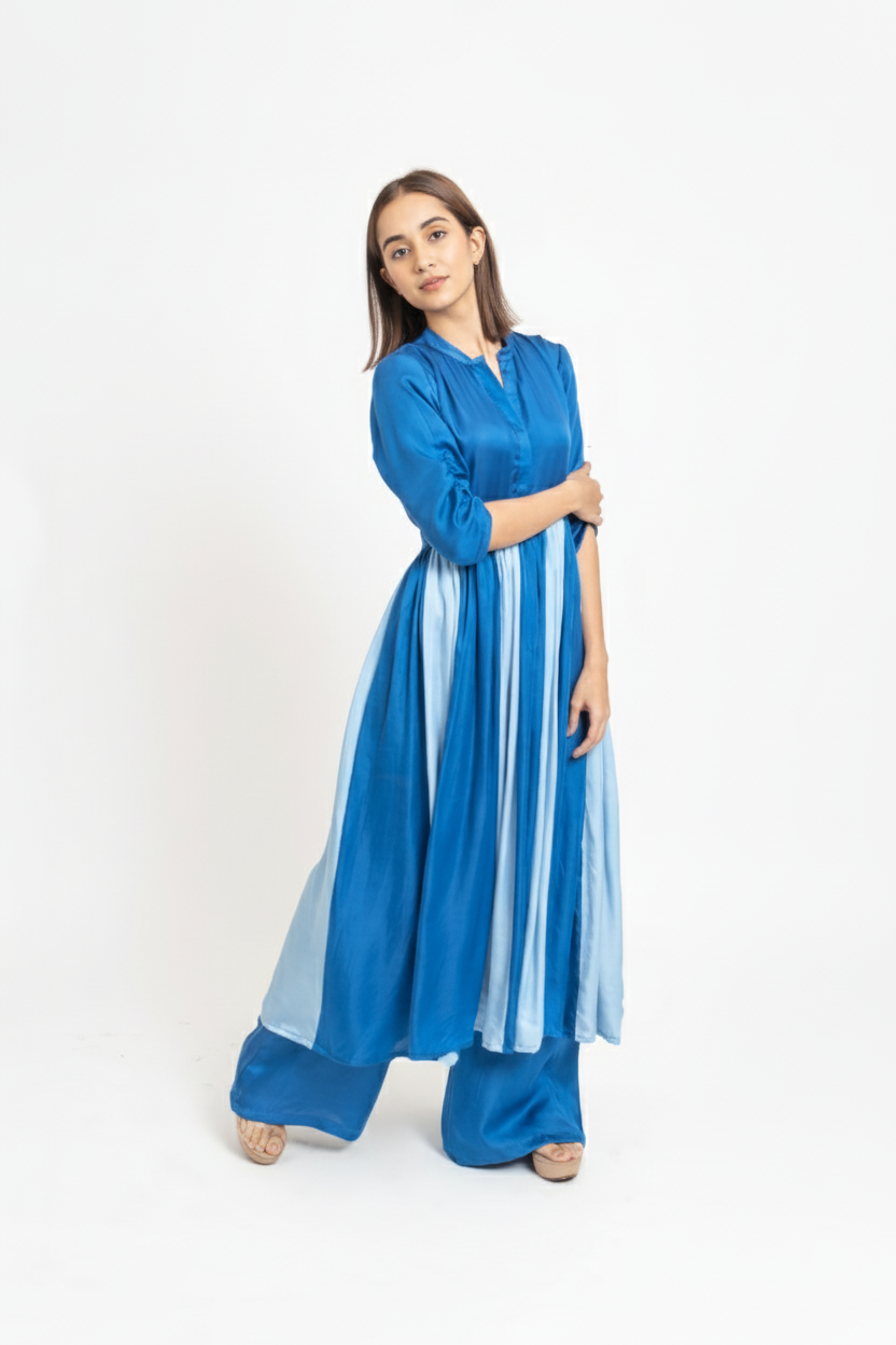 The Electric Blue and Ice Blue Colorblocked Panelled Kurta