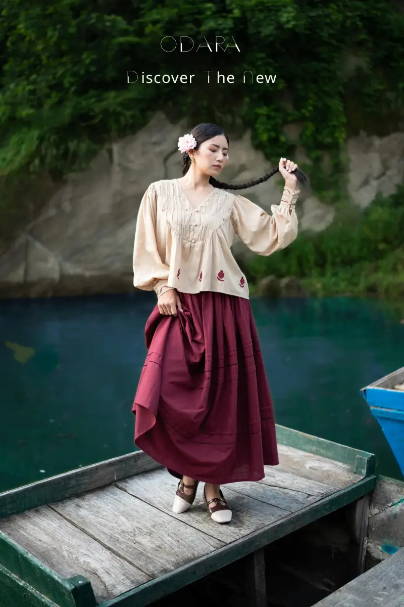 Paired with a rich maroon skirt, it creates a striking co-ord, with pleats and lace detailing all done by human hands which makes its a timeless choice for everything from casual gatherings to refined occasions