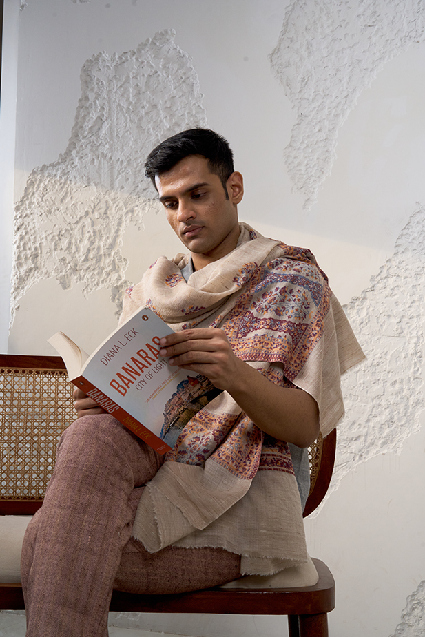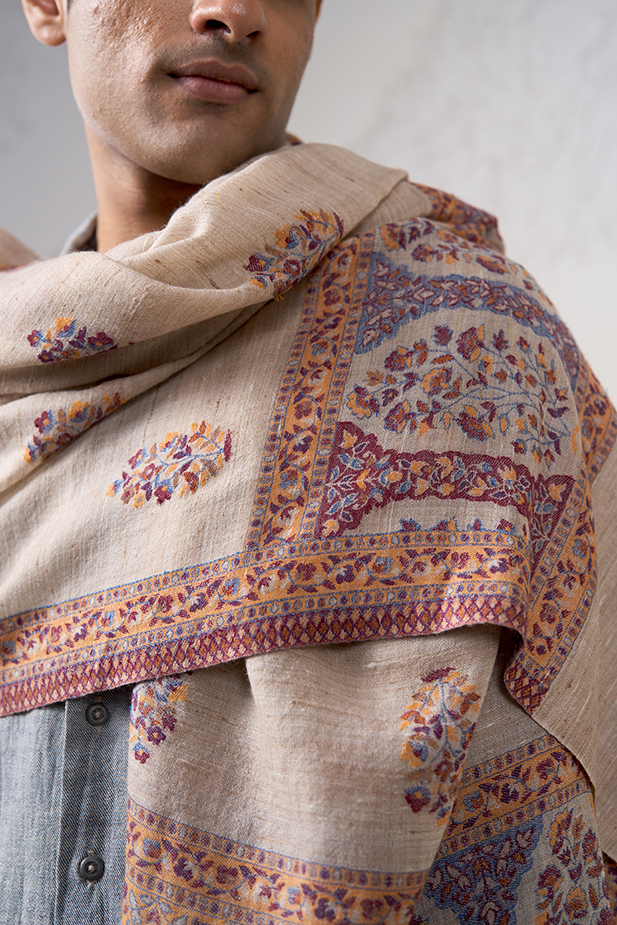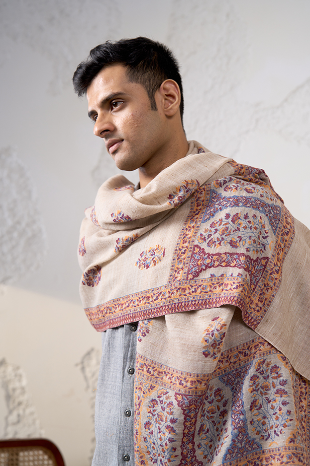 Eunoia, Greek for beautiful thinking, rightfully so has been the inspiration behind our design for this kani sthawl. An elegant accent to make a statement.