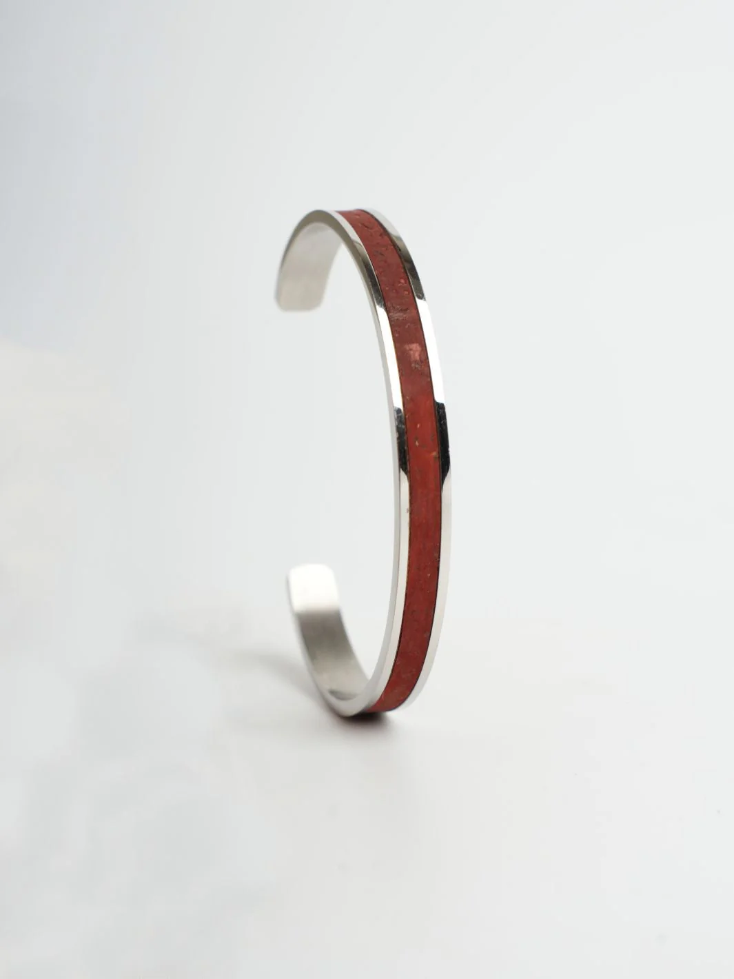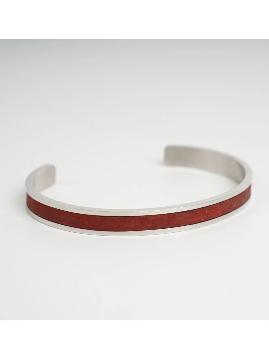 Our “Forest Hues Adjustable Cuff,” is a truly one-of-a-kind men’s bracelet that seamlessly blends the raw beauty of cork with the sleek elegance of premium grade stainless steel. Available in the distinctive hues of the forest; natural beige, chestnut brown, and mahogany maroon cork bark, and complemented by the rugged allure of stainless steel, this bracelet exudes a striking visual appeal that’s bound to make heads turn and conversations flow.