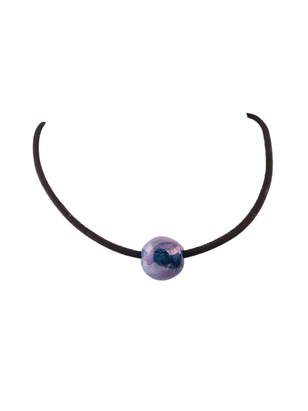 Gaia, our ethereal earth is the inspiration behind this elegant necklace. Dark brown cork and a ceramic sphere that is not perfectly shaped in hues of blue, purple and pink with a beautiful lustre is enclosed with a rose gold clasp. Wear it with a shirt or even with your traditional outfit to create a knock out look.