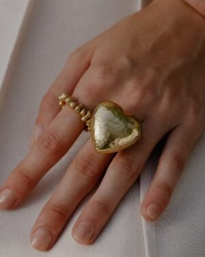 A gilded glow heart-shaped ring crafted in premium brass alloy with 22KT real gold plating. This elegant and bold women’