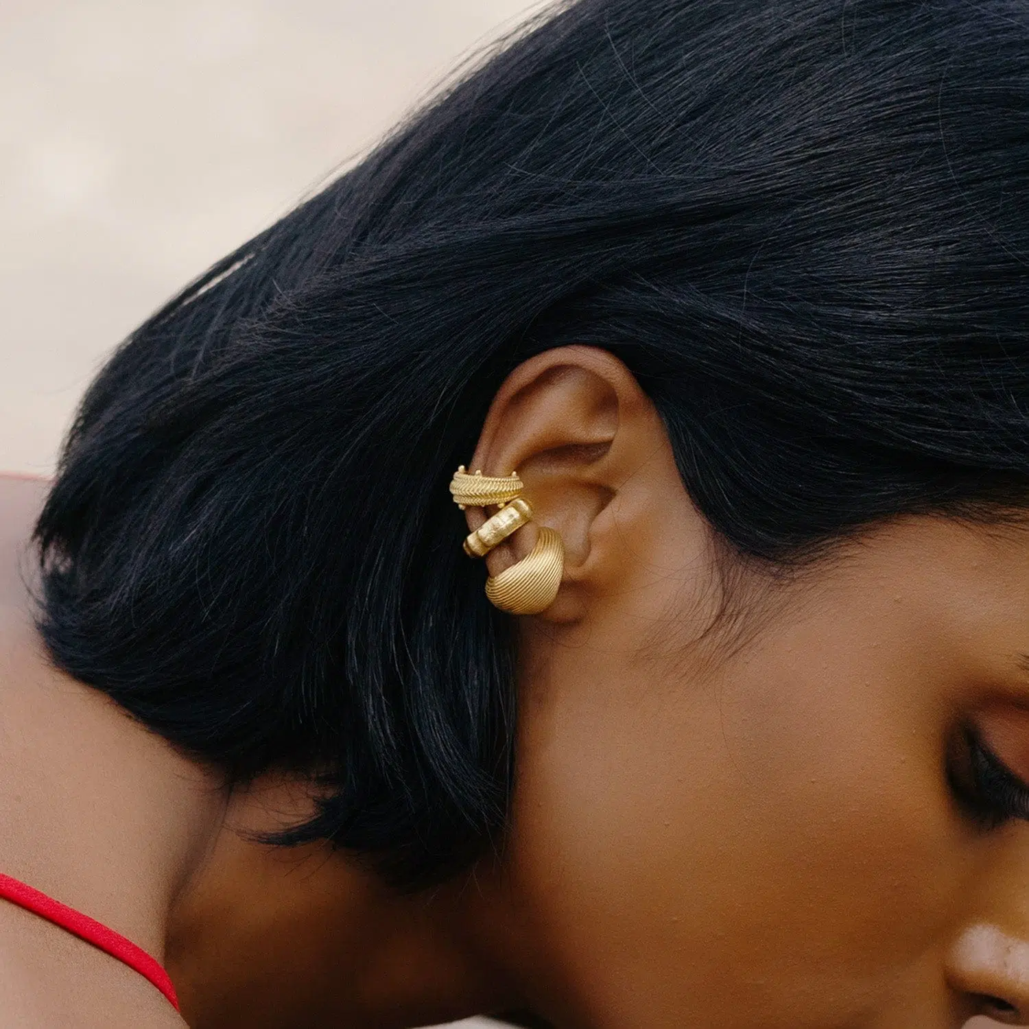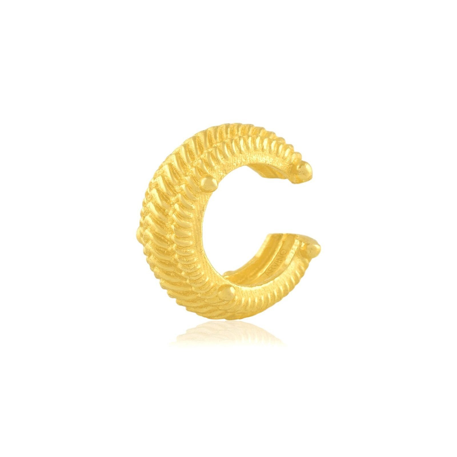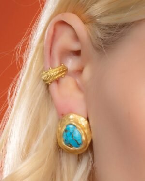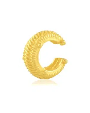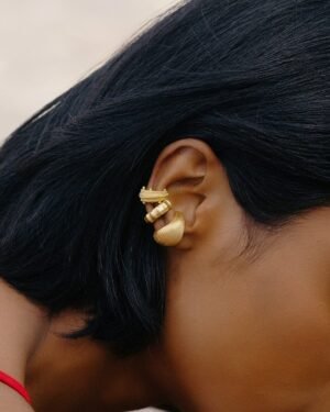 Add a touch of modern elegance to your look with this Gold Plated Dotted Ripple Ear Cuff, designed for women who love refined designer jewelry.Featuring a dotted ripple texture inspired by flowing metal waves, this ear cuff delivers a subtle yet striking statement. Crafted from premium brass alloy and finished with 22KT real gold plating, it offers long-lasting shine, durability, and a premium feel.The piercing-free slip-on design ensures easy wear and all-day comfort. This single-piece ear cuff is ideal for everyday styling, parties, festive occasions, and designer wear looks. Pair it with minimal jewelry or wear it solo for a chic, contemporary finish.Key Features:Piercing Free Ear Cuff – No piercing requiredDotted Ripple Texture – Elegant designer finishSingle Piece Statement Design22KT Real Gold Plating on premium brass alloyLightweight, adjustable & comfortable fitPerfect for casual, party & festive wearA must-have accessory for women who prefer minimal yet luxurious designer jewelry.