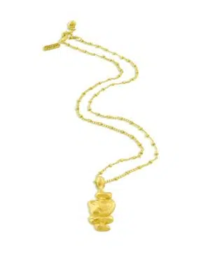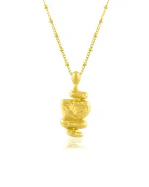 Celebrate heritage craftsmanship with the Gold Pratapgari Patrimony Totem Necklace, a statement jewelry piece inspired by traditional Indian totem artistry.This necklace features a beautifully carved patrimony totem charm, finished with 22KT real gold plating on a premium brass alloy base. The detailed carving and rich gold finish create a luxurious yet cultural appeal, making it perfect for women who appreciate artisanal design with a modern edge.Designed for festive celebrations, weddings, cultural events, and ethnic gatherings, this necklace pairs effortlessly with sarees, lehengas, anarkalis, and contemporary Indo-ethnic outfits.✨ Key Highlights: