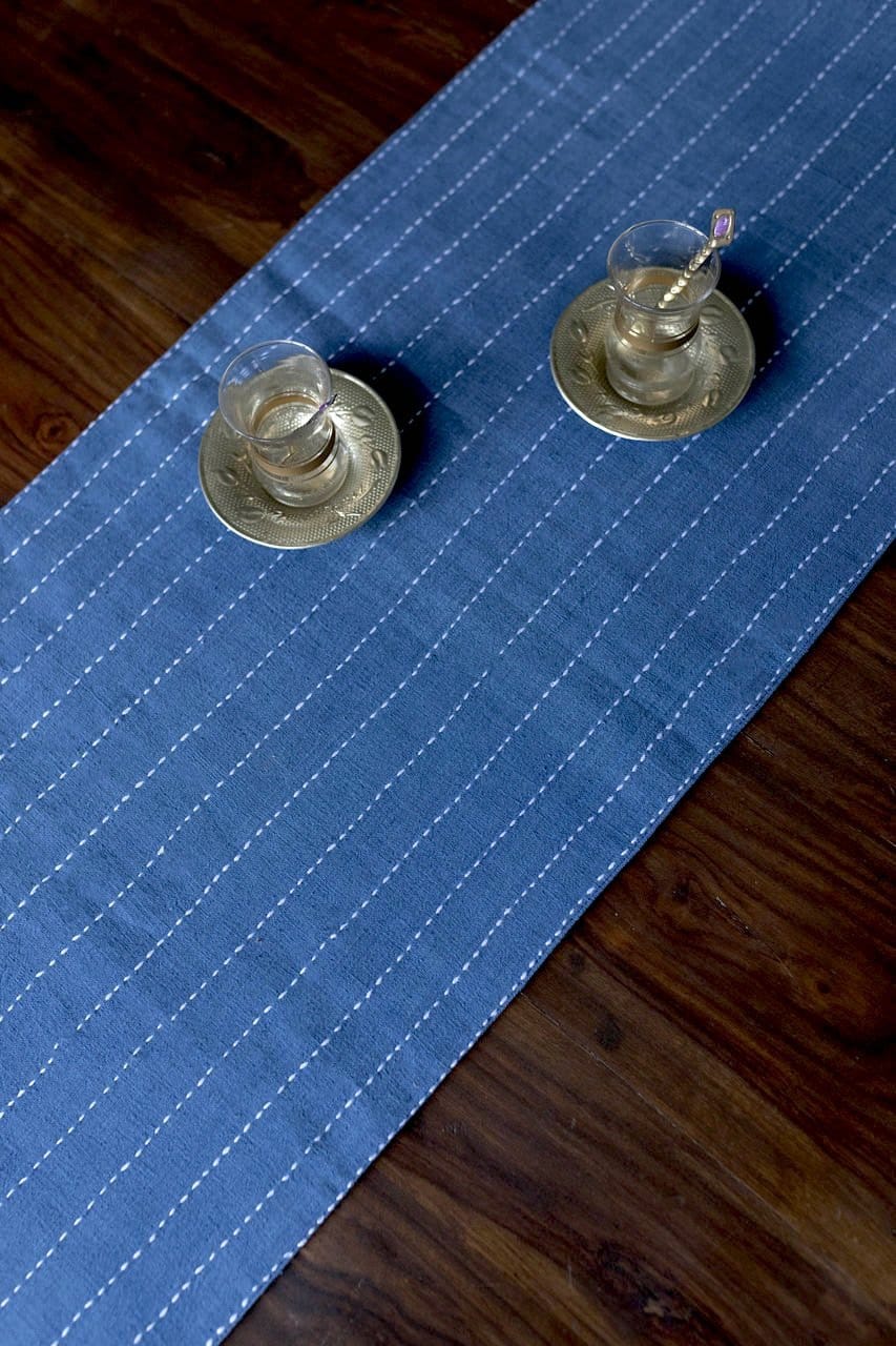 Featuring traditional Kantha hand embroidery from West Bengal, the unique floral and wildlife motifs in this table runner set mimic the abundance of India’s natural resources. Beautifully depicted on handwoven khadi by our craftsmen, it will lend a whiff of elegance to your dining room and almost depicts the fireworks felt after hearing a great story, the feeling also referred to Goya in Arabic.