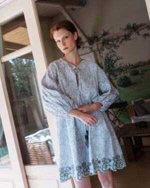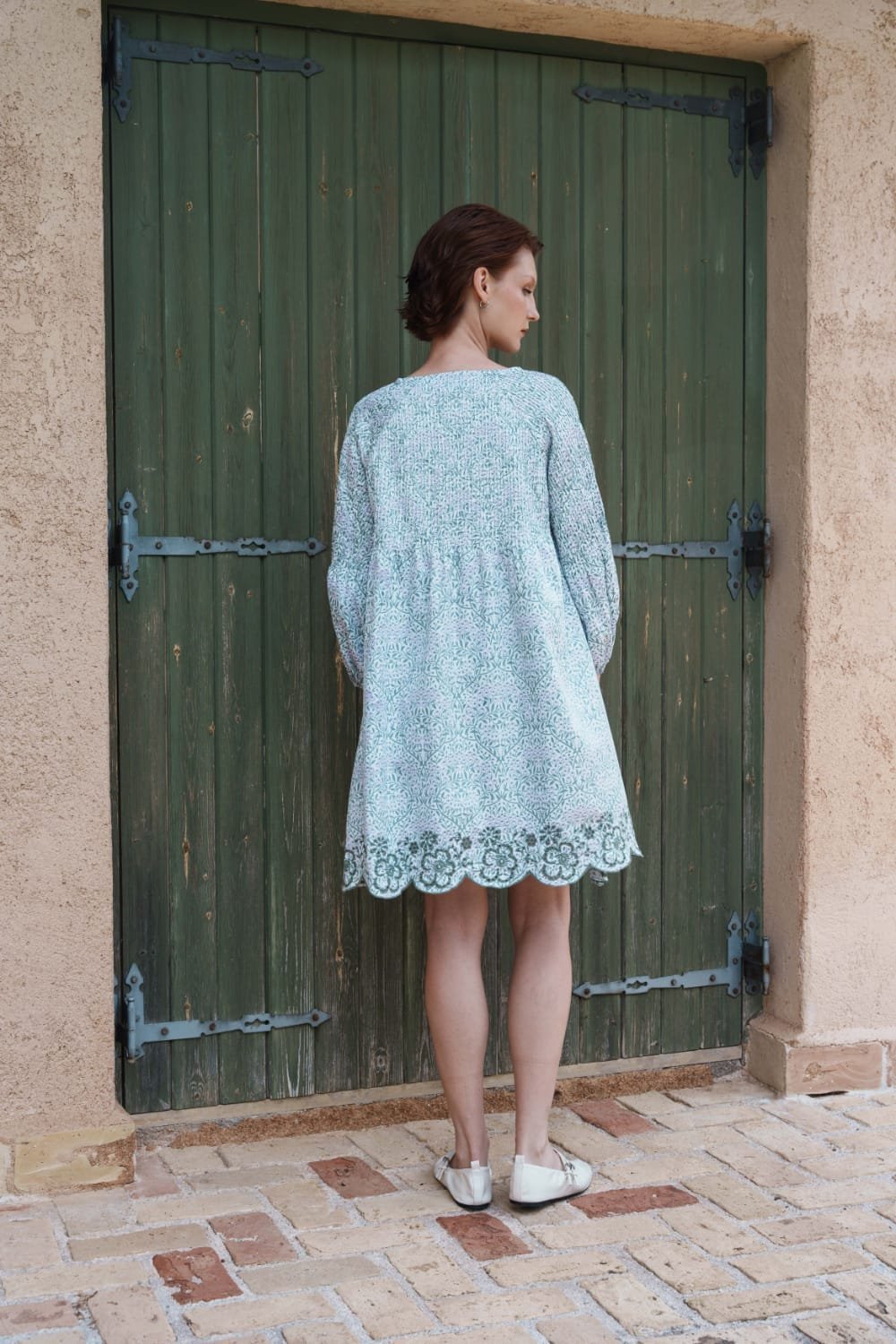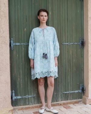 Crafted in fine fabric, this Green and lilac printed poplin dress with schfflie hemline showcases Pinnacle by Shruti Sancheti?s timeless craftsmanship and feminine grace. A perfect piece for effortless day-to-evening elegance.