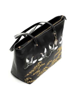 Inspired by the Greek Goddess of gardens, flowers, and swamps, the Antheia tote is a stunning blend of natural beauty and functional design. The intricate gold embroidery adds a touch of elegance, while the dark leather provides a sophisticated contrast. - Spacious Interior: The tote features three small multipurpose pockets, a dedicated iPad/diary pocket, and a phone pocket, ensuring ample storage for all your essentials. - Durable and Sustainable: Crafted from eco-friendly cactus leather and lined with hemp and lyocell, the Antheia tote is both durable and sustainable. - Product Dimension : L: 13" X B: 5" X H: 10.5" - Elegant Design: The intricate gold embroidery and dark leather create a stunning visual appeal. - Secure Closure: The zip closure keeps your belongings safe and secure. - A Harmonious Blend of Nature and Style: The Antheia tote is a harmonious blend of nature and style. It's the perfect accessory
