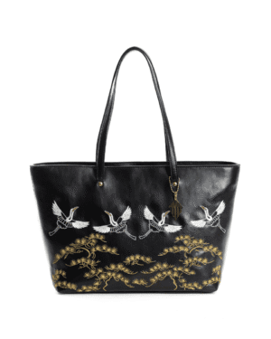 Embroidered eco-friendly tote inspired by nature, crafted from plant leather for graceful everyday carry.