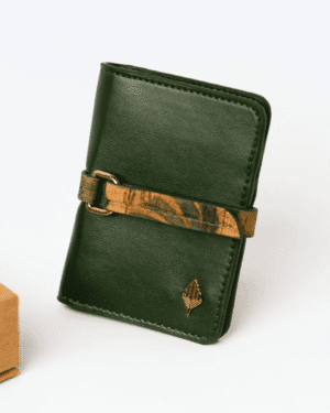 Minimalist bi-fold card holder made from cactus leather, offering smart storage in a compact and sustainable design.