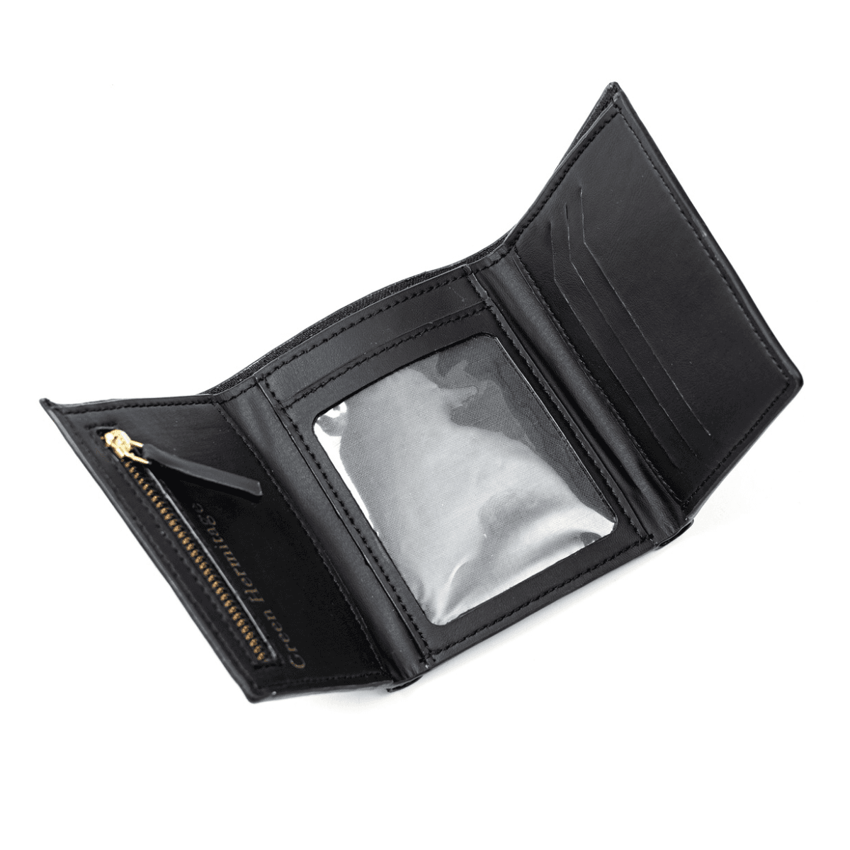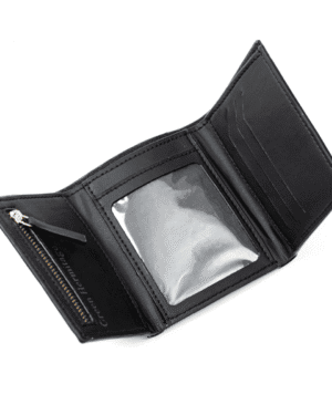 Crafted from premium Black Apple Leather, the Oxylus Trifold Wallet is a stylish and functional accessory. Its compact design and well-thought-out interior make it perfect for everyday use.