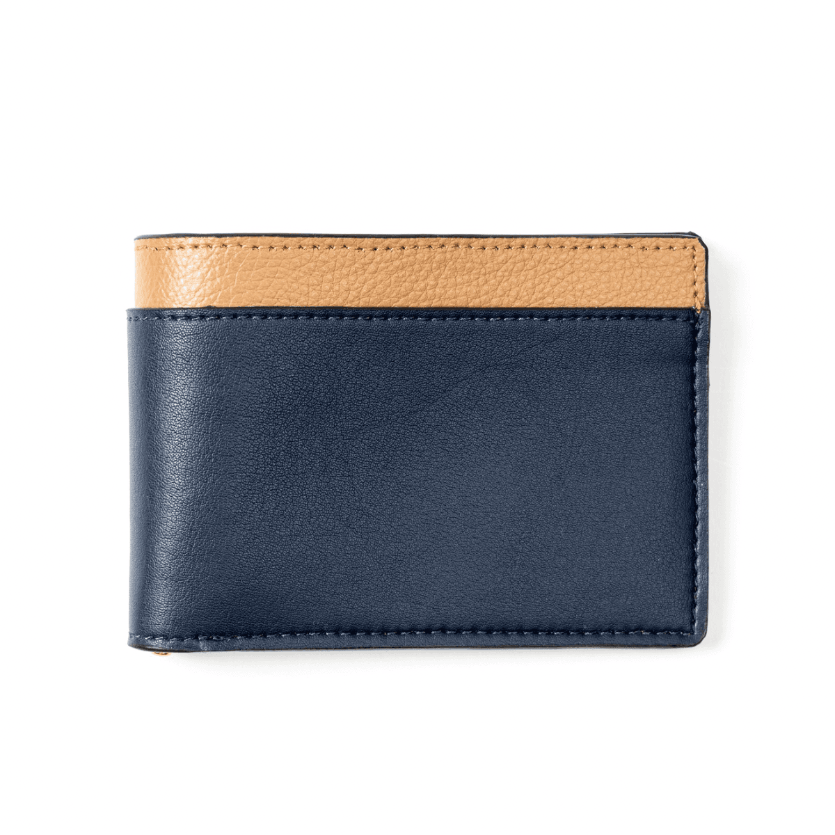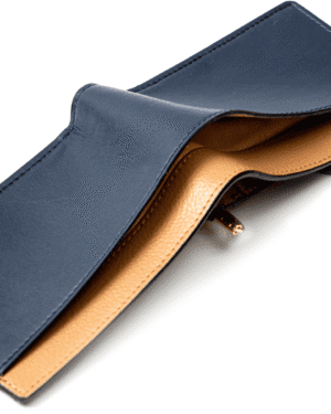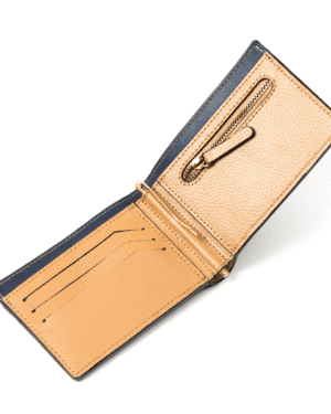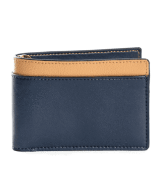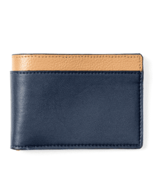 The Navy Blue & Caramel Zeus Bi-Fold Wallet is a statement piece crafted from a premium blend of cactus and apple leather. This unique combination of materials elevates the design with a touch of luxury and a contrasting color palette that guarantees heads will turn. - Luxurious Design: The contrasting navy blue and caramel colors create a sophisticated aesthetic that complements any style. - Versatile Functionality: Offers multiple compartments for your essentials, including dedicated cash slots, a secure zip coin pocket, card slots, and a convenient money clip for easy access to bills. ? - Quick Access Cash Slot: The exterior cash slot allows for easy retrieval of frequently used bills. ? - Slim Profile: The bi-fold design ensures a comfortable fit in your pocket without unnecessary bulk. ? - Sustainable Materials: Made from a blend of eco-friendly cactus and apple leather with a recycled material zipper, this wallet is