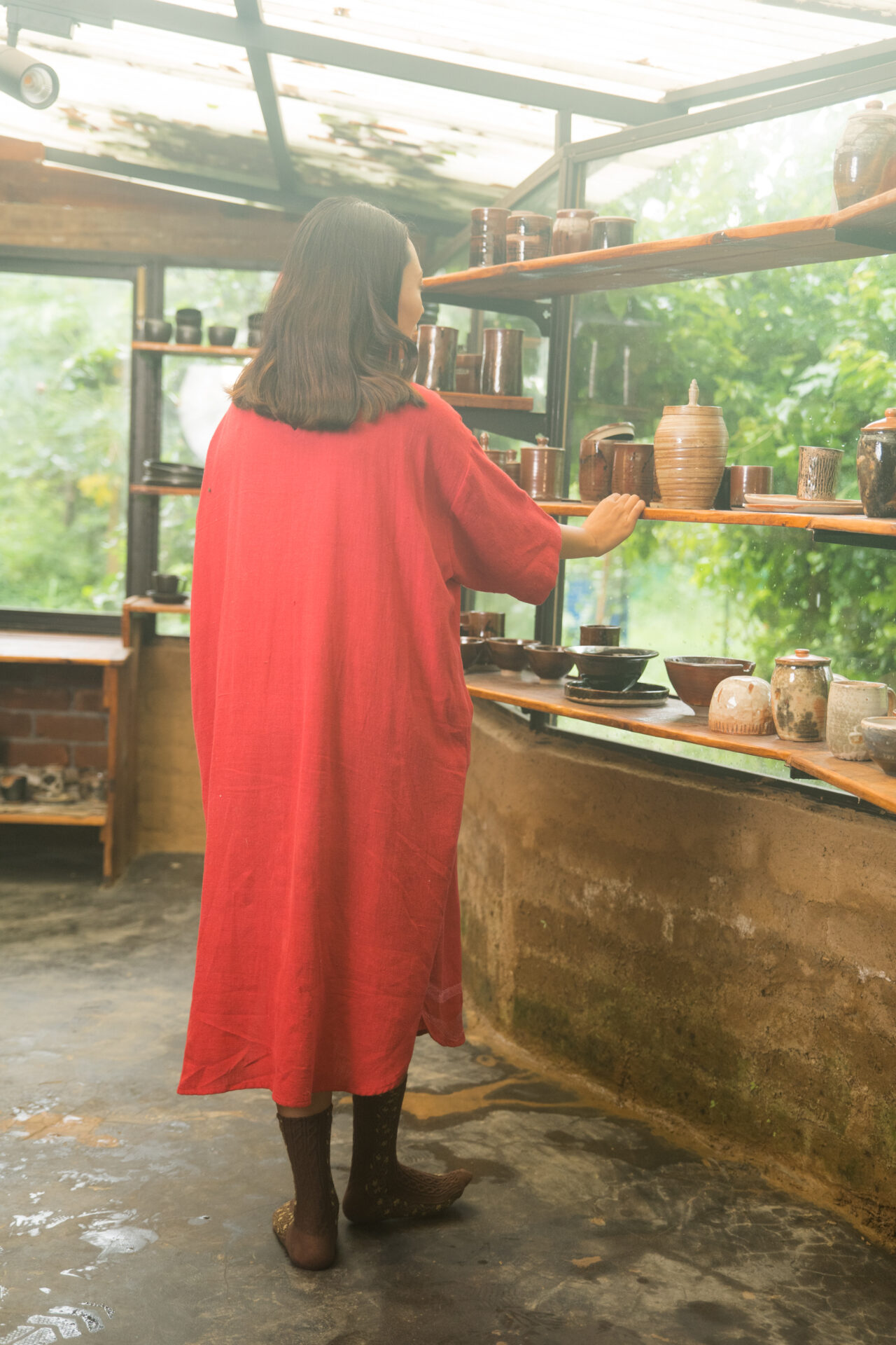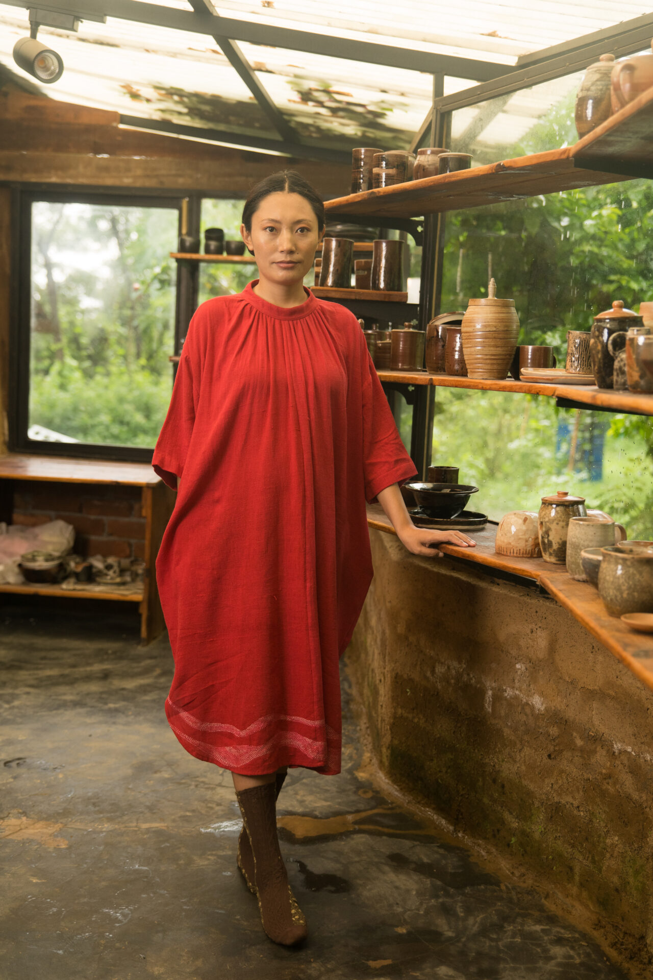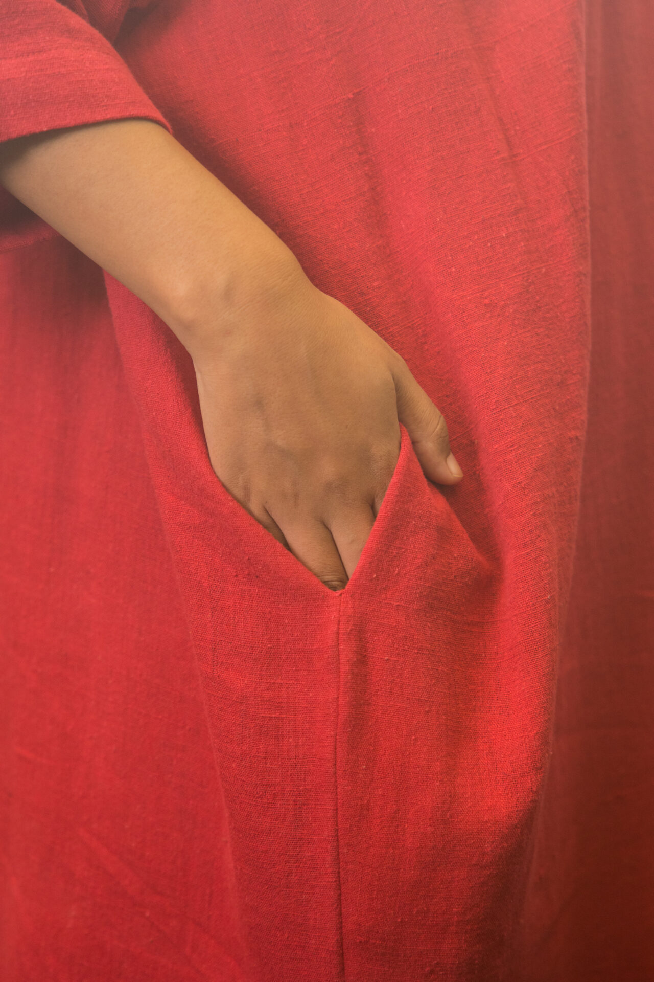 The perfect hand-embroidered hem dress to take you through the seasons. Designed with a bit of elegance around the neck and round side slits. Roomy through the bicep, bust, and upper back for movement, and of course – it has pockets. Layer it with trousers, wear it belted or loose, and breezy for a balmy day/ night out.;