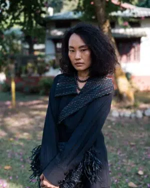 The garment is made from hand woven upcycled fabric and so the color might vary slightly for each batch.