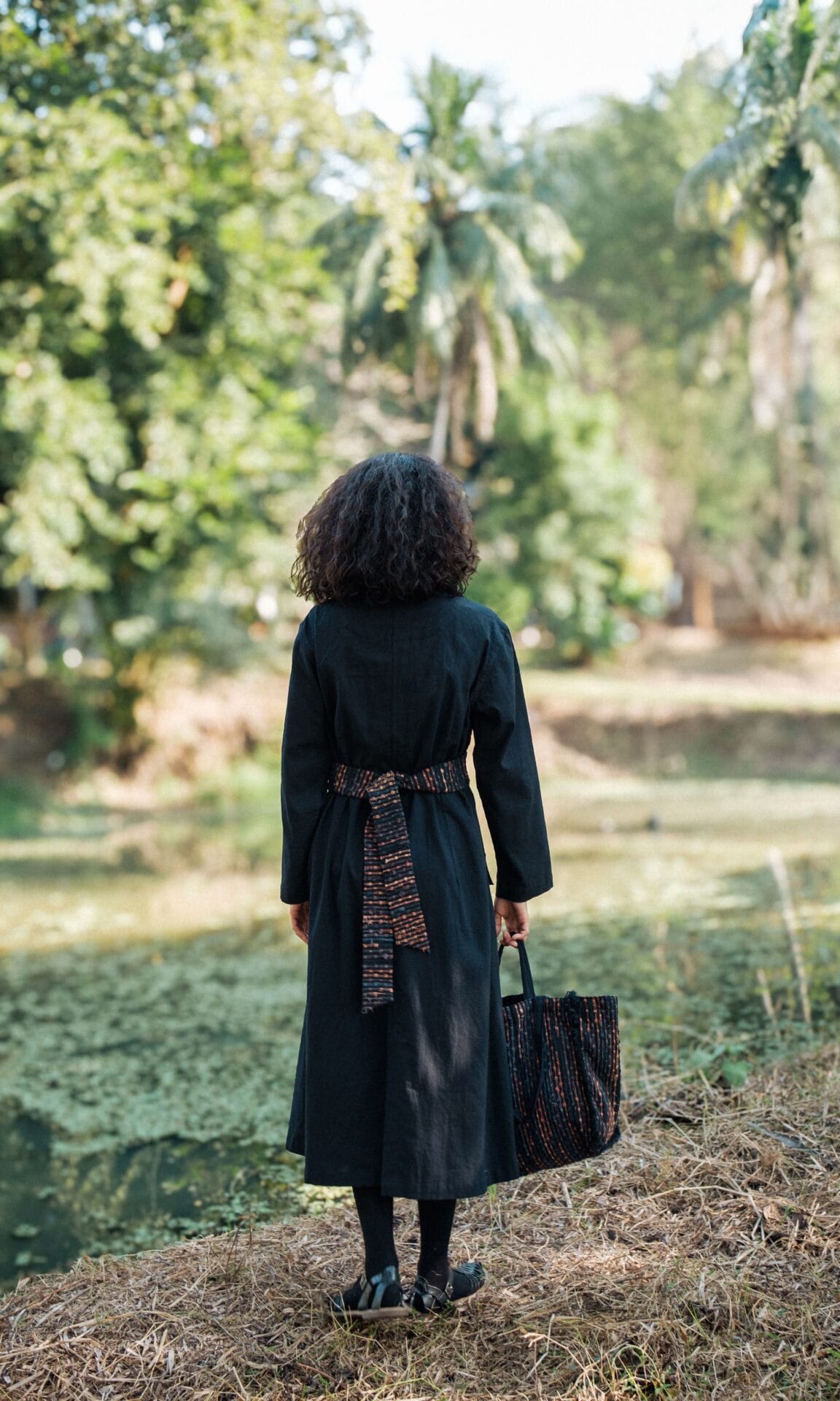 The garment is made from hand woven upcycled fabric and so the color might vary slightly for each batch.
