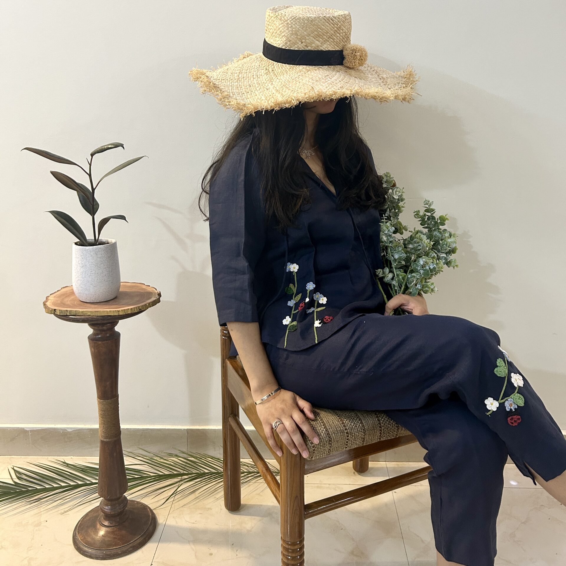 Indigo Serene Stich Linen Top & Trouser SetIndigo Serene Stich Linen Top & Trouser Set