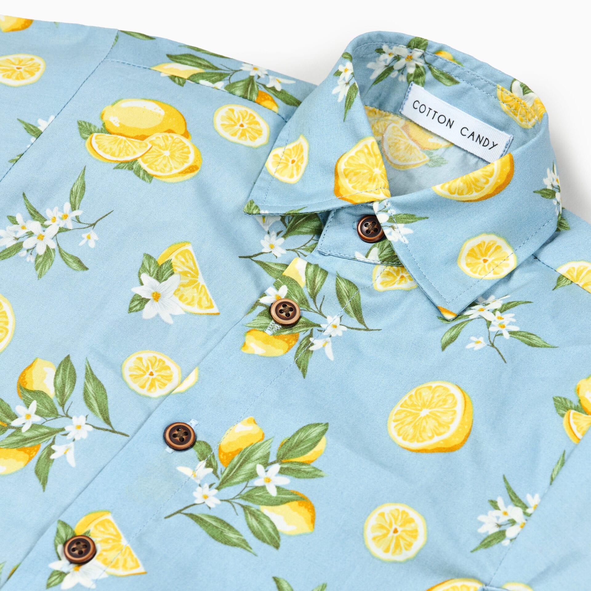 The Limone Blue Shirt is crafted from breathable cotton poplin, making it perfect for warm-weather comfort. Designed with a classic collar neckline, half sleeves, and a button-up closure, it offers an easy, relaxed fit. The printed pattern adds a fresh, seasonal touch, making it ideal for spring?summer styling and casual outings. Easy to maintain, it can be gently machine washed.
