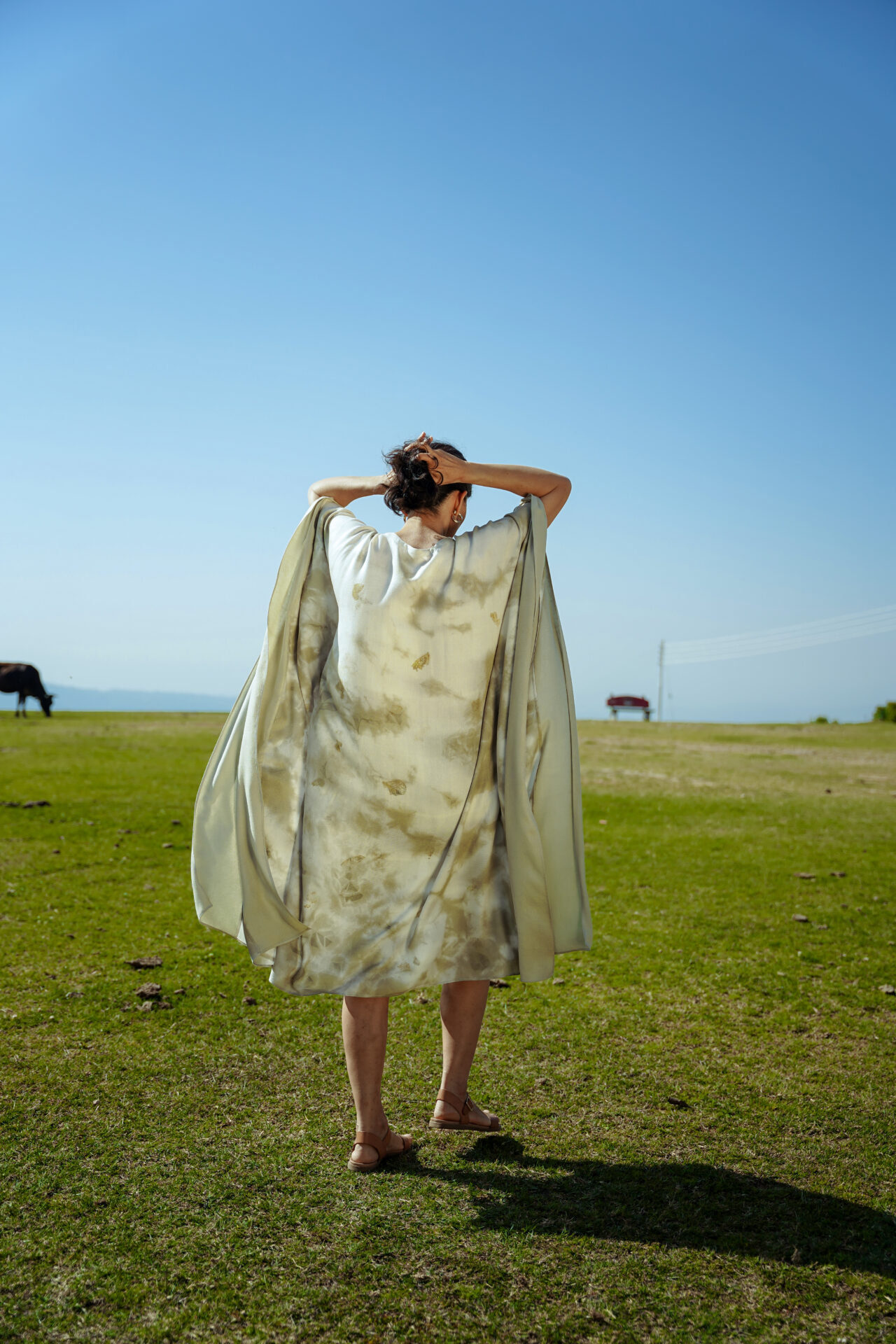 Do not dry in direct sunlight. Exposing your garment too long bursts of sunlight can cause the natural dye