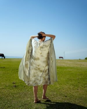 A modern summer dress, breezy and light with plenty of coverage, the L.10 kaftan is a versatile wardrobe staple. The loose fit provides multiple styling options. Finished with our beautiful color block panel at sleeves.; Craft: Handloom Weaved, Material: Lotus Silk, Return Policy: Non-Returnable, Shipping: 8 to 10 Working Days, Fit: Loose, Occasion: Casual, Sleeve: Yes, Care Description :"Washing Instructions: Fill your bucket with cold water, turn your Lotus silk item inside out, and submerge it. It comes to washing your Lotus silk item, your best bet is to use a high-quality liquid detergent. Add a few detergent drops into the water and stir it well, then leave your item in the solution for three minutes. Gently pull your garment up and down for three to five minutes to remove any dirt. Take your garment out from the sink, drain off the water, and rinse under cold water until the