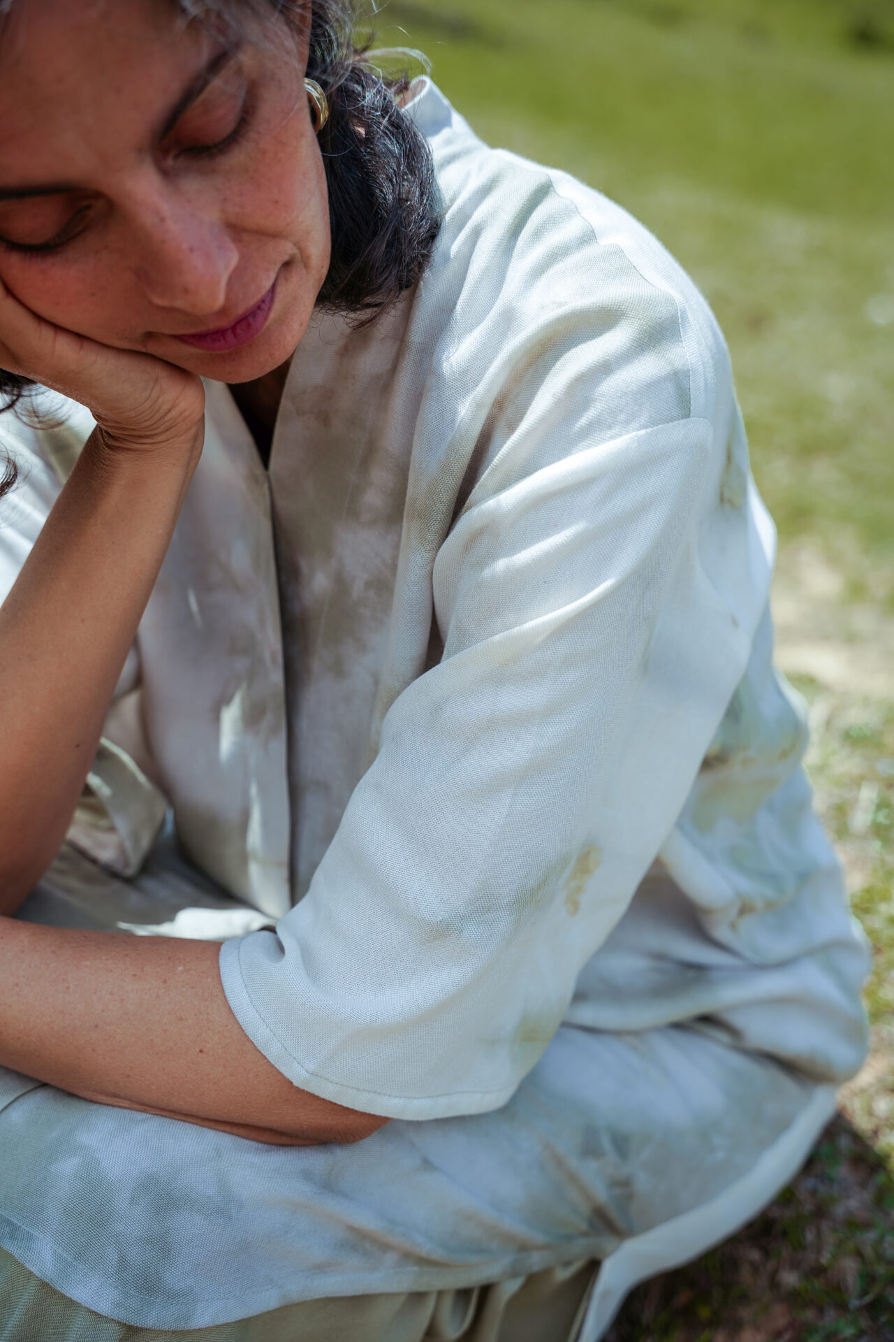 Do not dry in direct sunlight. Exposing your garment too long bursts of sunlight can cause the natural dye