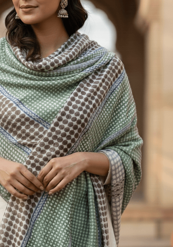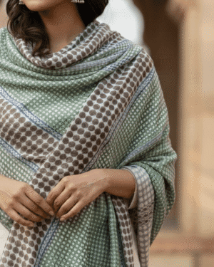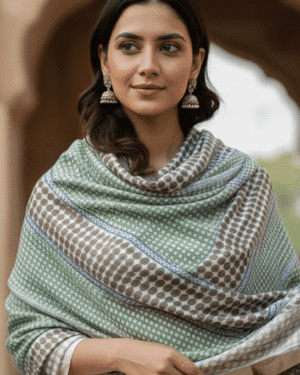 Wrap yourself in the soothing elegance of our Mint Echo Screen-Printed Cashmere Stole, crafted in 100% Fine Wool Cashmer