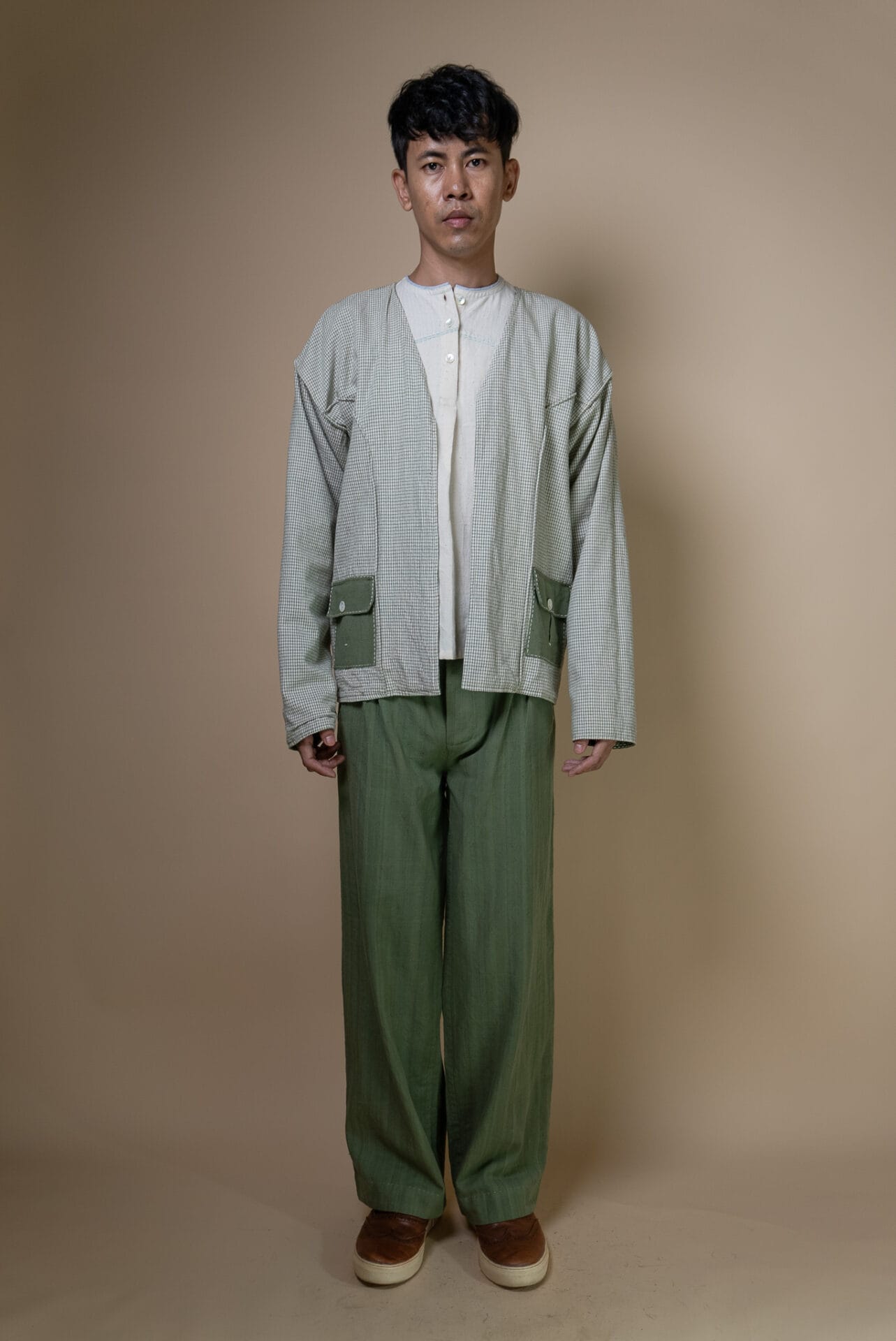 Crafted from 100% cotton fibers and natural materials, the Meadows Unisex Reversible Jacket is made from our signature Kala cotton, featuring azo-free dyed olive and subtly distorted olive and Kora checks.